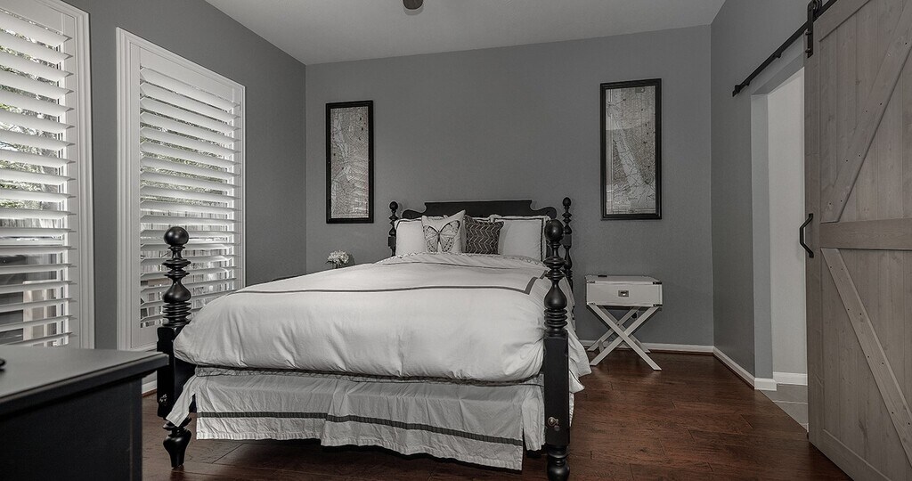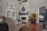 Cozy townhouse in Alden Bridge offers high-end features and ideal proximity! Enjoy an open-concept living area with high ceilings,engineered hardwood floors,and elegant plantation shutters with lots of natural light throughout. The island kitchen boasts quartz countertops and sleek white cabinets. Relax by the gaslog fireplace or at the breakfast nook. The Master Bedroom is conveniently located on the first floor. Upstairs,find two generous room sizes and a dedicated game room. Outdoor space includes a private fenced backyard with a wood deck perfect for entertaining,backing to a greenbelt. Features also include bonus attic storage and proximity to parks,walk/bike trails,shopping,and restaurants. **Refrigerator,washer and dryer are included. Move in Ready on January 7th. MLS# 58700686