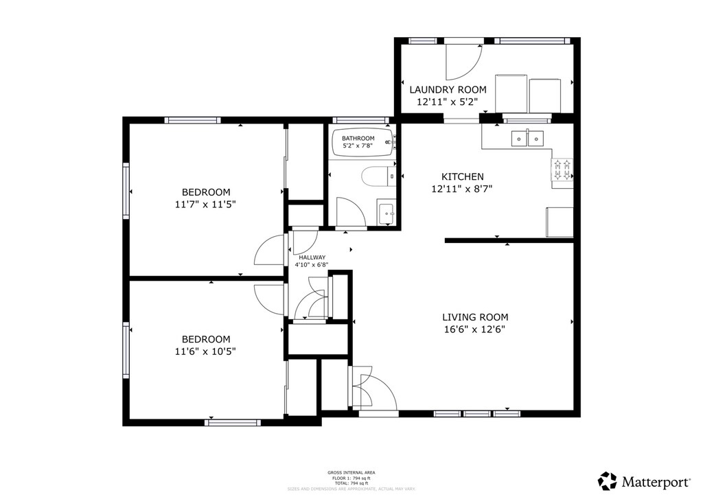 - 2BR, 1BA