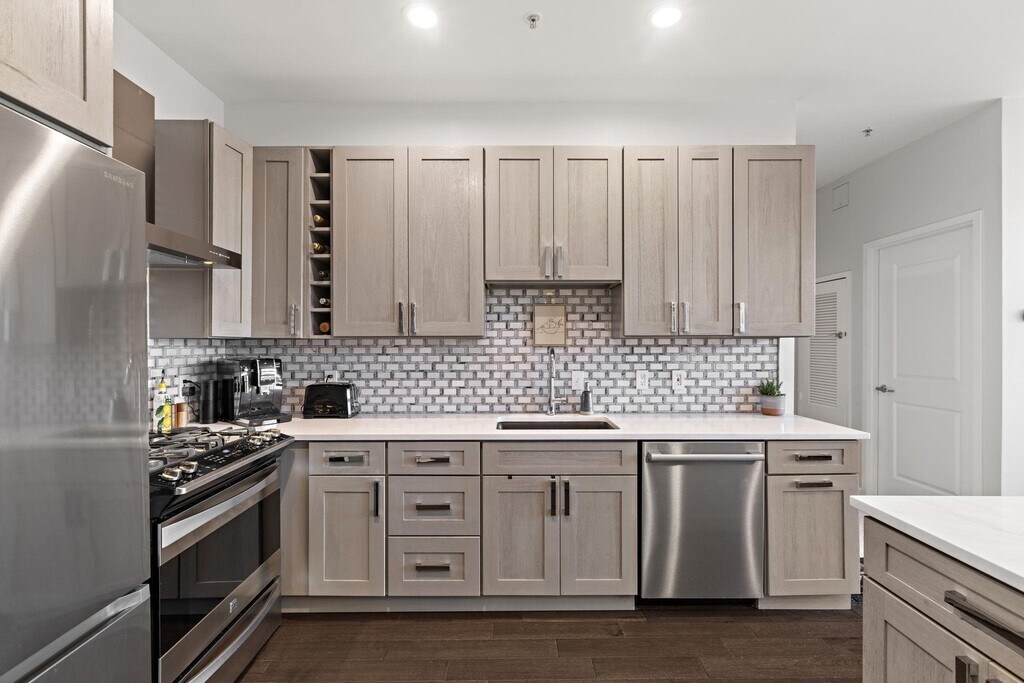 Flooded with natural light and perfectly positioned in the heart of Hoboken, this stunning east-facing 2-bedroom, 2-bath residence offers the ideal blend of modern luxury and everyday comfort. With gleaming hardwood floors throughout and oversized windows that drench every room in sunlight, this home delivers an inviting and airy feel from the moment you enter. The open-concept living and dining area centers around a chef-inspired kitchen featuring sleek stainless steel appliances, quartz countertops, a massive center island, and abundant cabinetry—ideal for both cooking and entertaining. The spacious primary suite is a true retreat, complete with a luxurious ensuite bath boasting a double vanity with a lighted mirror and a glass-enclosed shower. The second bedroom offers incredible flexibility as a guest room, home office, or nursery, and is complemented by a beautifully appointed second full bath. All closets have been outfitted for maximum storage. Enjoy the convenience of a full-size washer and dryer in-unit, as well as central heating and cooling in a well-maintained steel-and-concrete elevator building that provides exceptional sound insulation. Residents also benefit from a fully equipped gym and a shared landscaped yard—perfect for relaxing or socializing outdoors. Located within blocks of express buses that service both New York City's Port Authority and Hoboken Terminal (PATH, NY Waterway Ferry, Light Rail, NJ Transit), and is an easy walk to the NY Waterway Ferry, PATH, Washington Street, the Hudson River Waterfront Walkway and an exciting array of boutique shopping, dining, coffee shops, farmers’ markets, schools, daycare facilities, Trader Joe's, ShopRite, our beloved Columbus Park which includes tennis and basketball courts, 2 playgrounds, a water park, Hoboken's brand new NW Resiliency Park and open green spaces that make our Mile Square City so special.