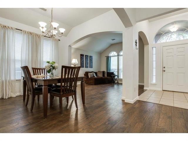 Just reduced! This lovely home in a quiet, sought-after community close to I-75. It backs up to an open great field with covered back porch, wood laminate flooring in living areas, separate shower and tub on master bath, kitchen open to living area. Spacious rooms. Close to McKinney High School and Park.