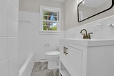 Welcome to this stunning 4-bedroom, 2.5-bathroom home in North Chesterfield, VA. This brick tri-level house boasts modern light fixtures, brass finishes, and stainless steel appliances. The spacious bedrooms feature hardwood flooring and plenty of natural lighting. The finished basement offers additional living space, while the sunroom provides a cozy spot to relax. With a laundry room, washer/dryer, and off-street parking, this home has everything you need. Step outside to enjoy the concrete patio and large backyard, perfect for entertaining. Don't miss out on the opportunity to make this beautiful house your new home.