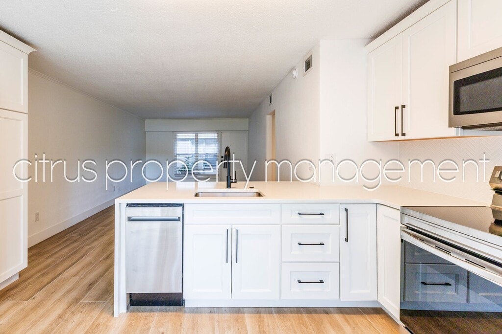 Live in Delaney Park in the heart of downtown! This 2-bedroom, 2-bathroom condo is completely updated with plank tile throughout. Kitchen has tons of storage with soft close cabinets, granite countertops and stainless applicances. Enjoy the view of Lake Copelande from your patio that is only steps from the pool. Minutes from downtown, Delaney Park, shopping, restaurants and entertainment make this a great location! Hurry this one won't last!