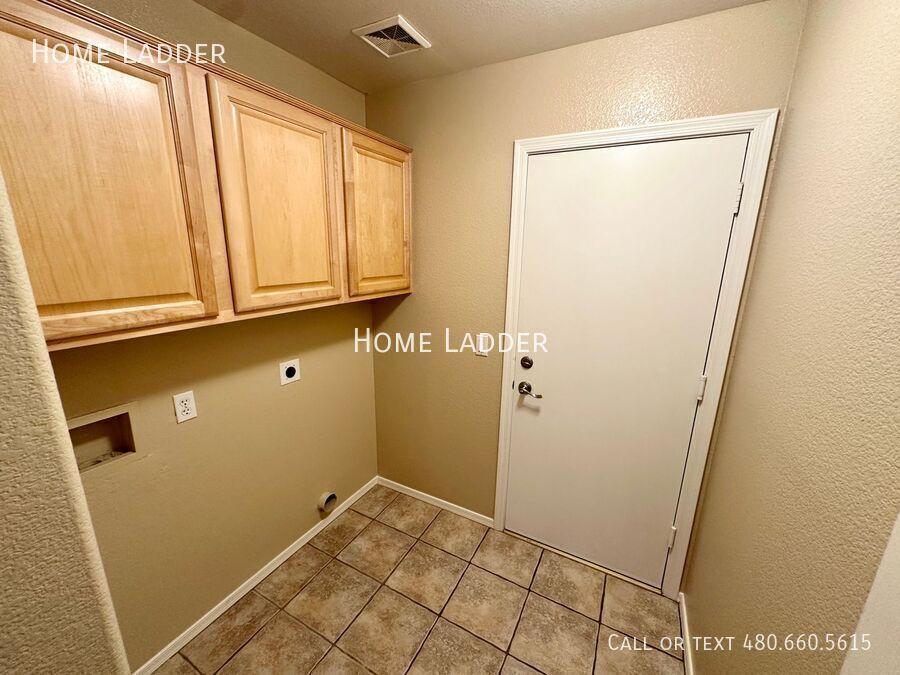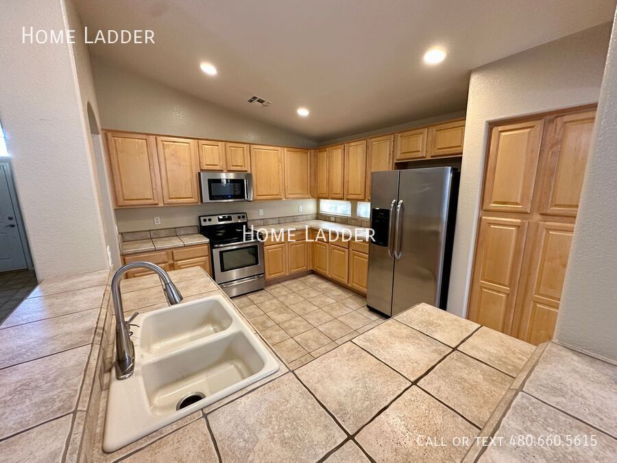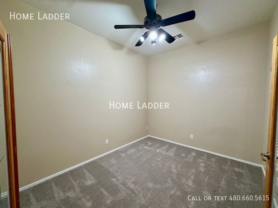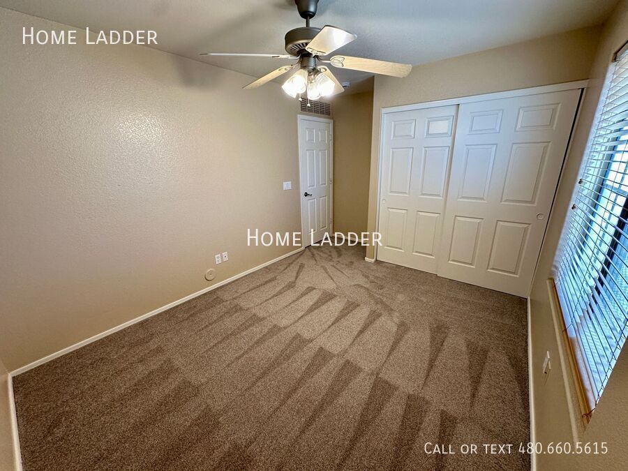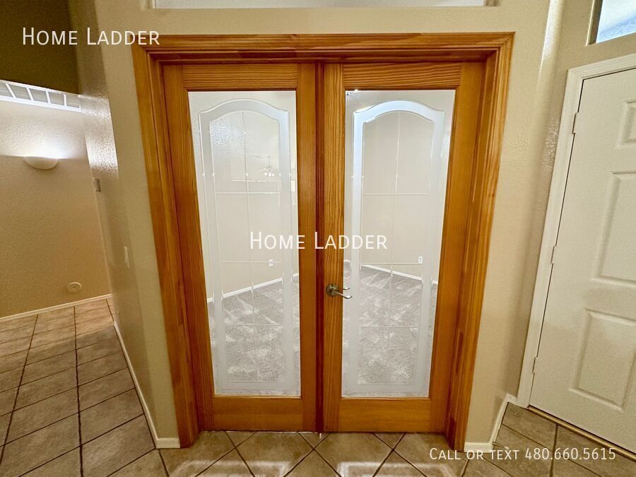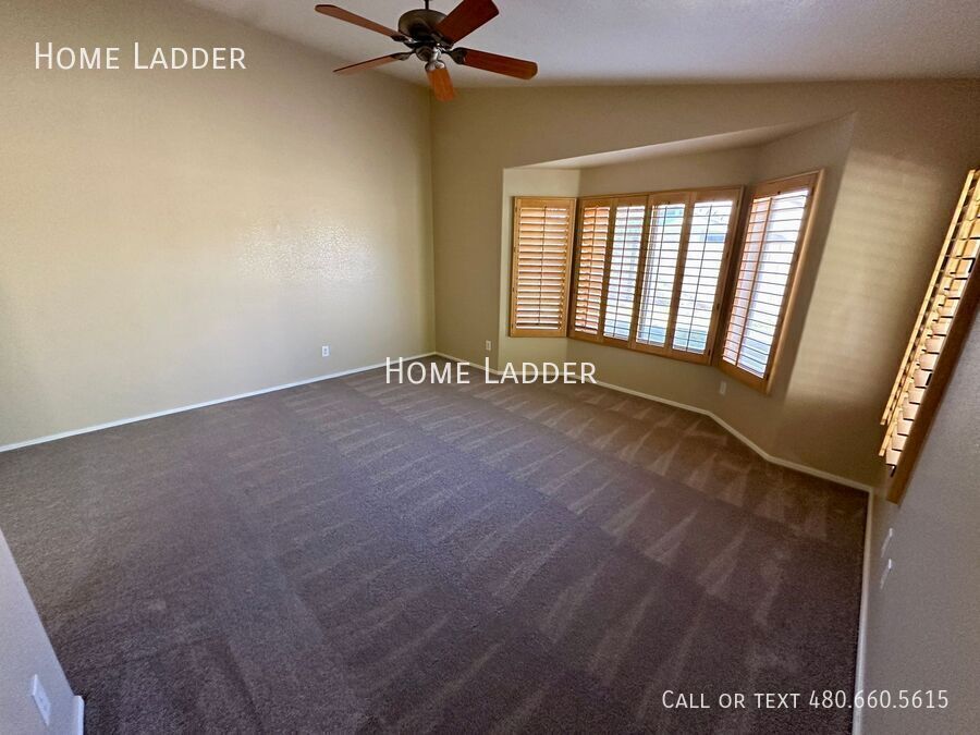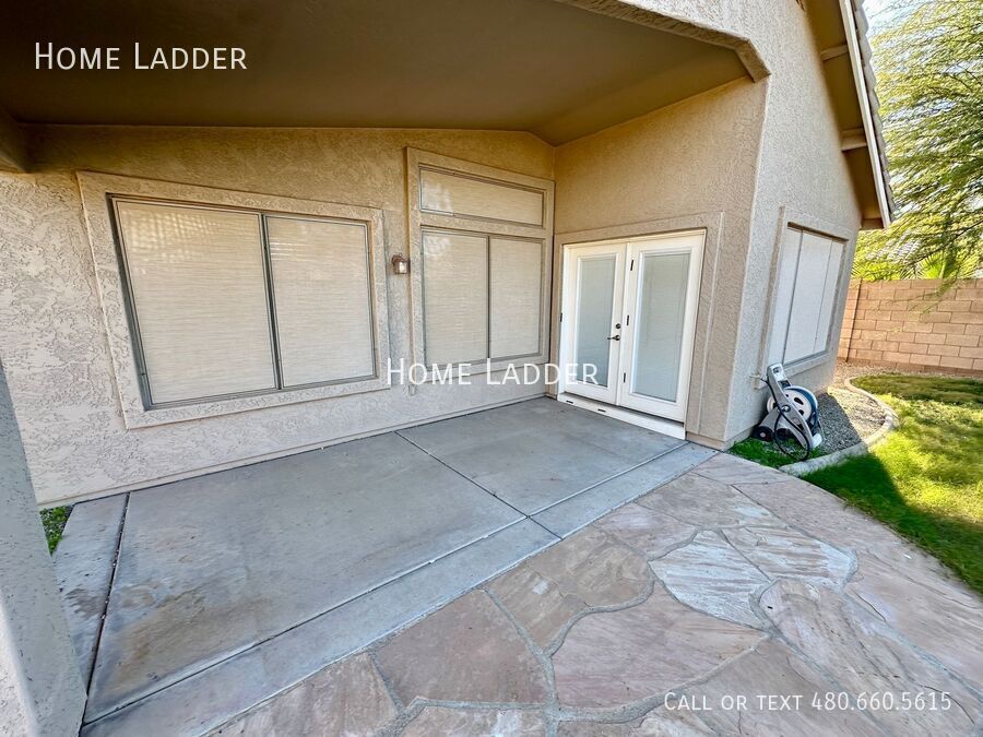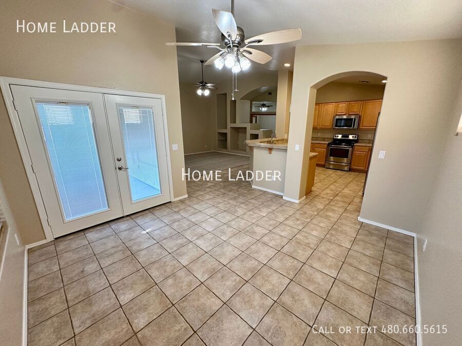 This beautifully maintained single-story 3-bedroom, 2-bath home with an enclosed bonus den offers comfort, style, and a layout designed for easy living. Vaulted ceilings greet you at the entry and open to a spacious living area with custom built-ins, creating an inviting setting for relaxing or entertaining. The Great Room, Kitchen, and Dining Area flow seamlessly, offering plenty of space for gatherings both large and small. The kitchen is designed for both function and convenience, featuring raised maple cabinetry, extensive tile countertop space, and a breakfast bar that provides additional seating and serving space. Adding a touch of charm and sophistication, the etched glass French doors lead into the enclosed den, ideal for a home office, media room, or flex space. Tile flooring accents high-traffic areas, while plush carpet in the bedrooms, den, and great room adds warmth and comfort. Custom window coverings enhance the home’s polished design. The thoughtfully designed split floor plan offers privacy for the primary suite, complete with a spacious bathroom and a large walk-in closet. All windows are equipped with summer screens, helping maintain privacy and keep the home cooler during Arizona’s warm months. Step outside to enjoy the backyard oasis, featuring a grassy play area and a covered patio, perfect for outdoor dining, relaxing evenings, or weekend fun. The low-maintenance front yard adds great curb appeal while keeping upkeep simple. Enjoy convenient access to shopping, everyday essentials, and some of the area’s best restaurants and entertainment, with nearby freeways making commuting a breeze. An excellent choice for residents seeking comfort and modern design! All Home Ladder residents are enrolled in the Resident Benefits Package (RBP) for $50/month, which includes renters insurance, credit building to help boost your credit score with timely rent payments, $1M Identity Protection, HVAC air filter delivery, our best-in-class resident rewards program, and much more! More details upon application. Additional monthly fees: $9 admin, $35 pet rent/pet. This property qualifies for our security deposit alternative—move in with less upfront cost! One-time fees: $49 application fee per adult, $149 pet application per pet, $195 administration, and a security deposit equal to one month’s rent. 12-18 month minimum lease term. If moving in between 7/1 and 01/31, the lease term shall be 18 months. If moving in between 2/1 and 6/30, the lease term shall be 12 months. Lease must commence within 21 days of application approval. After approval, security deposit must be delivered to our office by noon on the next business day. The lease must start Monday-Thursday and not on any federal/state holidays.