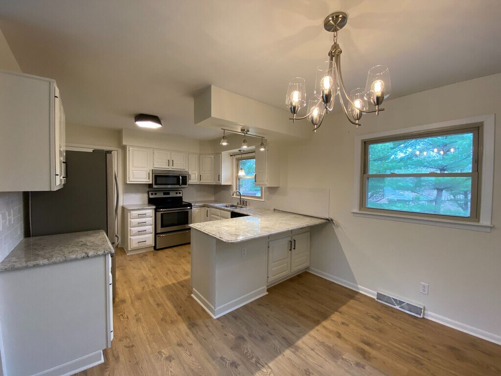 Four bedroom, two bath ranch near Griffy Lake! Updated kitchen with appliances. Large open living spaces, both upstairs and downstairs. Finished downstairs living area that opens up onto backyard covered porch. Three bedrooms upstairs and one downstairs. Laundry room with washer/dryer hook up and plenty of storage throughout house. Large front and backyard, corner lot! Lawn care included. Tenant responsible for utilities (gas water heater and furnace).