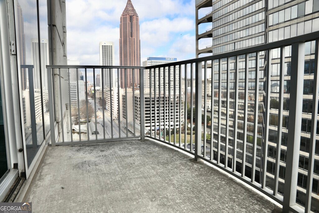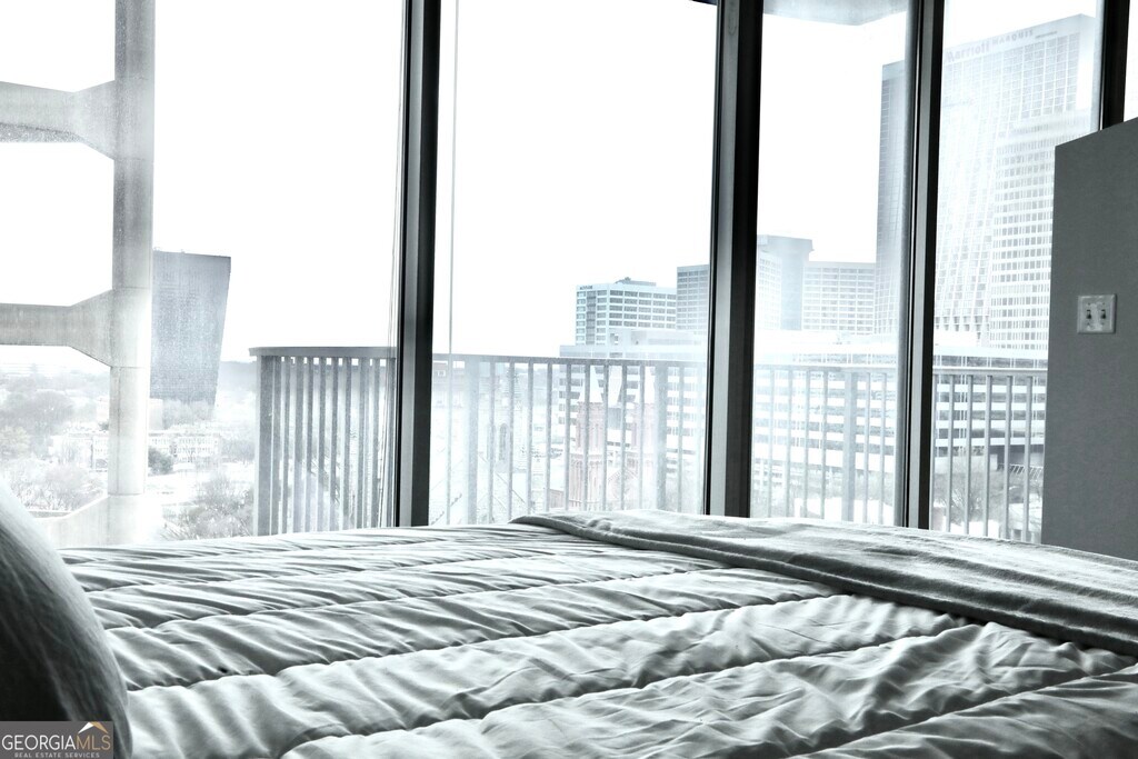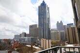 Enjoy elevated Midtown living from this 14th-floor corner residence at Twelve Centennial Park. Floor-to-ceiling windows wrap the living area and primary bedroom, showcasing sweeping city views and filling the space with natural light. The unique floorplan offers a spacious living room with balcony access and built-in features including bar area, shelving, and desk space. The home has been freshly painted throughout and features professionally cleaned carpet in the primary bedroom with hardwood floors in the main living areas. The kitchen is equipped with granite countertops and stainless steel appliances. The bedroom includes a built-out walk-in closet and an en suite bathroom. Residents enjoy full-service high-rise amenities including 24-hour concierge, pool, fitness center, clubroom, theatre room, business center, and onsite property management. Located one block from MARTA and minutes from Midtown dining, offices, and entertainment. Includes one reserved garage parking space. Applicants will complete credit and background screening through RentSpree as part of the application process. MLS ID 10705553