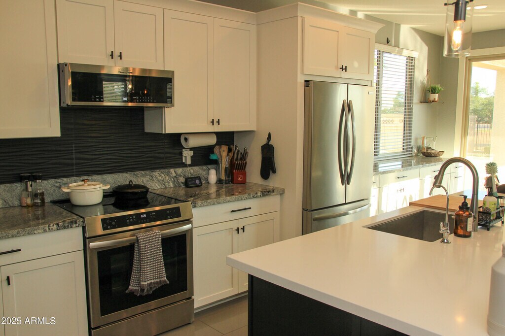 SPACIOUS & UPGRADED 5 BEDROOM 2.5 BATHROOM HOME. SIT ON LARGE LOT WITH SWIMMING POOL & RESORT STYLE BACKYARD. 2 CAR GARAGE IS INSULATED. KITCHEN EXPANDS OUT TO LARGE FAMILY ROOM. KITCHEN FEATURES LARGE ISLAND WITH QUARTZ COUNTER TOP. AMPLE CABINET SPACE,COFFEE BAR & LARGE WALK IN PANTRY. MAIN FLOOR HAS ONE BEDROOM + POWDER ROOM. 2ND FLOOR HAS 3 BEDROOMS,FULL BATH & LOFT AREA. PRIMARY SUITE HAS DOUBLE VANITY,EXTRA LARGE WALK IN CLOSET,WALK IN SHOWER. CANYON TRAILS HAS WALKING TRAILS,PALYGROUND,GREEN AREAS AND IS LOCATED CLOSE TO SHOPPING & DINING.