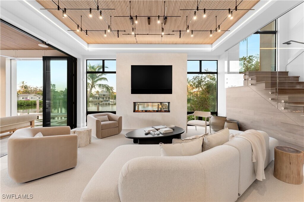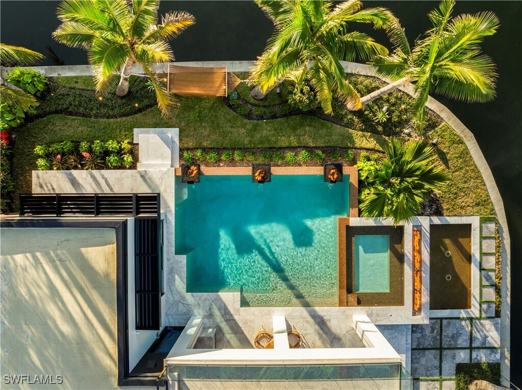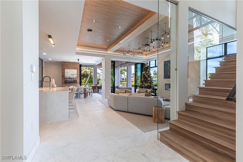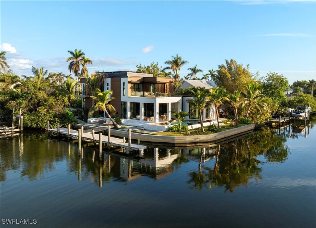 Brand new 2025 home!Available for Season: November,December January,February and March! Bring all offers Stoff Cooney Modern Masterpiece: A Trophy of Timeless Elegance Located just one mile from Naples’ renowned 5th Avenue and 1.8 miles from pristine Gulf beaches,this architectural marvel boosting sophisticated luxury by star designer Tina Twigger sets a new standard for luxury living. With nearly 200 feet of direct Oyster Bay frontage,the property offers an unrivaled waterfront lifestyle,complete with the opportunity to build multiple docks and a nearly 60 ft existing dock,making it a dream for boating enthusiasts. Spanning almost 4,000 sq. ft. of interior space and over 7,000 sq. ft. of total living area,the home features five spacious bedrooms,five full baths,two half baths,and an ergonomic office. At its heart,a 2,500 sq. ft. wrap-around sun terrace seamlessly blends indoor and outdoor living spaces,showcasing breathtaking panoramic water views. Nicknamed the “Modern Taj Mahal,” this residence stands as a first-of-its-kind masterpiece,celebrated for its exceptional design and meticulous craftsmanship. Boasting over 7,500 sq. ft. of marble finishes—including more than 40 full-size slabs—the home is a testament to timeless elegance. The striking glass-box architecture,with floor-to-ceiling sliders and expansive windows,floods every room with natural light. Built with durability and resilience in mind,the property features concrete Duroc walls,water-resistant custom cabinetry,and commercial-grade heavy-duty flood panels,which provide an additional 4 feet of storm protection. This cutting-edge construction has kept the home safe and dry during recent hurricanes,offering unmatched peace of mind. •Sustainable Living: A high-power solar roof and Tesla Powerwalls deliver self-sufficient energy,drastically lowering electricity costs while serving as an instant backup generator during outages. •Sophisticated Ambiance: The residence features a 30+ speaker high-fidelity sound system,three indoor fireplaces,and an oversized outdoor fireplace that beautifully frames the 12x14 hot tub,creating a luxurious and welcoming atmosphere. •The custom light fixtures for the home from multiple famous design houses serve as jewelry throughout Outdoor Oasis: The meticulously landscaped grounds include three poolside fire bowls,six water features,and over 25 rare exotic palms illuminated by more than 100 warm landscape lights,creating a private tropical retreat. A Timeless Lifestyle Situated in a prime location near Naples’ vibrant downtown and stunning beaches,this Stoff Cooney creation blends convenience,elegance,and innovation. With its seamless integration of indoor and outdoor living,meticulous design,and thoughtful resilience,the home offers more than just a place to live it provides an extraordinary lifestyle.