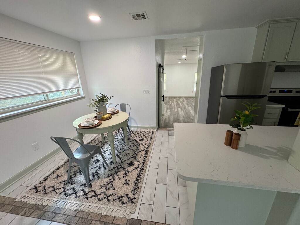 Welcome to this charming 3-bedroom, 1.5-bathroom home located in the heart of Oklahoma City, OK. This home boasts a fully fenced yard, perfect for outdoor activities, and a 2-car carport to protect your vehicles from the elements. The interior has been freshly painted and features granite countertops in the kitchen, adding a touch of elegance. With two living areas, there's plenty of space for relaxation and entertainment. The home also includes an inside laundry room for your convenience. The garage has been converted for additional living space, and a storage shed is available for your extra belongings. The sliding barn door adds a rustic touch to the home, and the stainless refrigerator and smooth top electric range in the kitchen are ready for your culinary adventures. The home also features a new shower in the bathroom and has no carpet, making cleaning a breeze. This home is located within the OKC school district, making it a great location for educational opportunities. Come and see this gem for yourself!