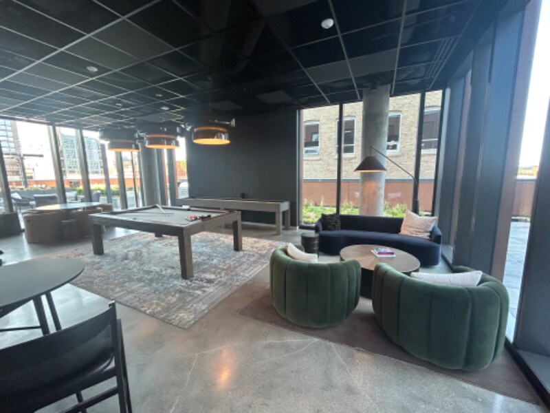 Property Id: 1593907 Price net effective of 2 months free This brand new 21 story apartment building is located right on the edge of the West Loop in the Fulton Market District. This former warehouse district is now a hip corporate and entertainment area known for its entertainment and restaurants. When you live at this luxury high rise, you’re within short walking distance to just about anything you'd want or need. These luxury apartments showcase beautiful high end kitchens with stainless steel appliances and quartz countertops. Each unit boasts a neutral color palette and sleek hardwood plank flooring throughout. You're sure to love the in-unit washer and dryer and amount of ample closet space, as well. When it comes to amenities, these guys spared no expense. Invite your friends to enjoy dinner in the private dining areas--then head over to play billiards or shuffleboard. Burn off those extra calories at the on-site athletic club that is fully stocked with first class gym equipment.