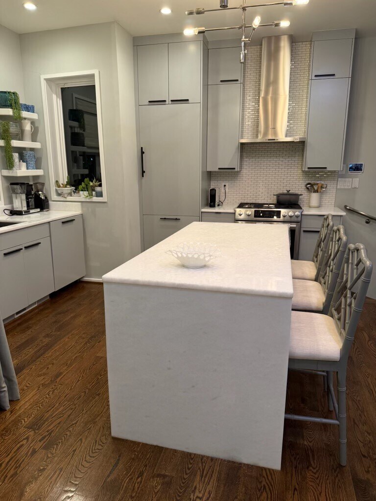 Boutique condo located in the bustling U St/Shaw corridor, just two blocks from Whole Foods. A private entrance gives the condo the feeling of a single family home. Spread out over three levels, it is a designer showplace with high ceilings, three balconies, luxurious wall paint, custom window treatments, rain showers, and gorgeous hardwood floors. It is also upgraded with a Google home system, smart locks, Phillip Hue lights, built in home-wide audio system (including on roof), updated washer/dryer, and located on a quiet street with ample street parking. Two large bedrooms each have their own en-suite bathroom and large closets, and open-concept gourmet kitchen and living room have floor to ceiling windows, along with half-bath. Expansive private roof deck with gas grill, gas firepit, large outdoor TV, and private beautifully landscaped fenced front yard with hydrangeas. MUST SEE!!!