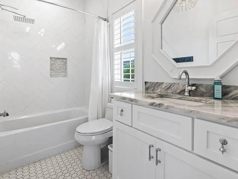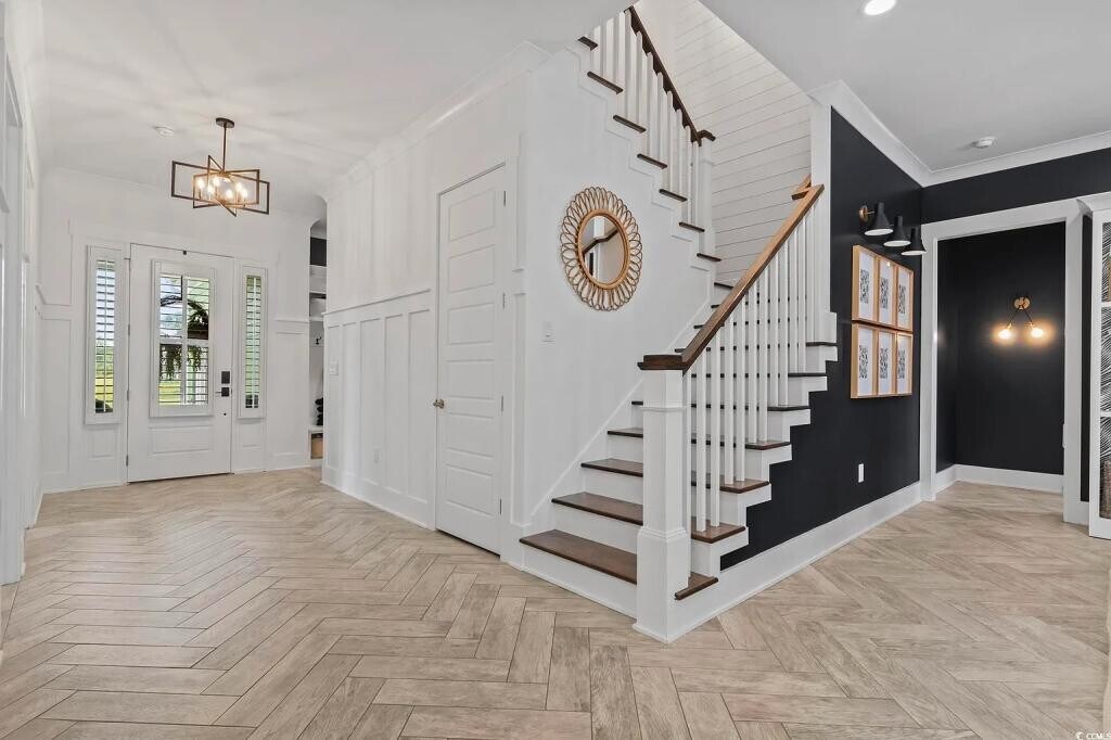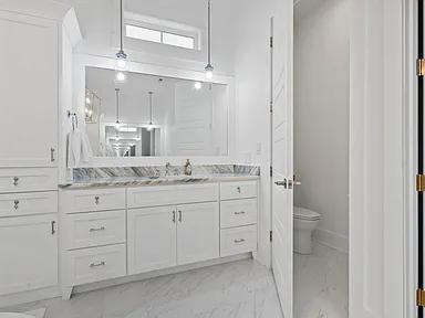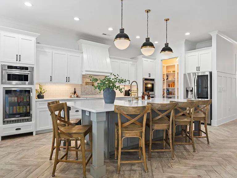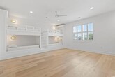 Step into this extraordinary home designed for comfort, style, and upscale living! Experience a rare combination of luxury, space, and exceptional design in this stunning 5-bedroom, 4-bathroom home-perfectly situated on an oversized 69-foot-wide lot in the highly sought-after Waterway Palms Plantation. While most lots behind the clubhouse are only 42 feet wide, this expansive property offers unmatched privacy, enhanced outdoor living, and breathtaking views of the pond and clubhouse-all surrounded by meticulously maintained landscaping. Step inside to discover a layout that blends comfort with high-end elegance. The spacious main living area features handcrafted North Carolina cabinetry, soaring 10-foot ceilings, and 8-foot solid-core doors throughout the first floor. The gourmet kitchen serves as the heart of the home, boasting one of the largest islands in the community-comfortably seating six-along with stainless steel appliances and a generous walk-in pantry. A 12-foot sliding glass door fully retracts to create a seamless transition into the EZ Breeze-enclosed patio, allowing you to enjoy the outdoors year-round-protected from the elements or opened to welcome a refreshing coastal breeze. Your backyard oasis is designed for relaxation and entertainment in every season. Featuring a sleek saltwater black-plaster pool, oversized hot tub, and elegant pillow-edge pavers, the space offers a true resort-style experience right at home. The luxurious first-floor primary suite provides ultimate tranquility with no second-story living space above it. Highlights include two walk-in closets, a spa-inspired walk-through shower with three shower heads, dual marble-top vanities, and beautiful picture-frame finishes. The first floor also includes: A full in-law suite with 36-inch doors and a zero-entry shower A dedicated office with custom built-in desk A well-designed mudroom An oversized garage with extensive built-in storage-fits 2 vehicles plus a golf cart Upstairs, enjoy a versatile bonus room with four built-in bunk beds-each equipped with nightlights, shelving, and charging stations-plus a snack area with refrigerator and cabinetry. Three additional bedrooms with walk-in closets, two full bathrooms, a massive storage closet, and a second laundry room complete the upper level. This exceptional home effortlessly combines luxury, functionality, and comfort in a way rarely found. With a premium oversized lot, resort-style outdoor living, and thoughtful upgrades throughout, it offers the perfect environment for relaxing, entertaining, and creating lasting memories. Schedule your private tour today with MATCH PROPERTY MANAGERS!