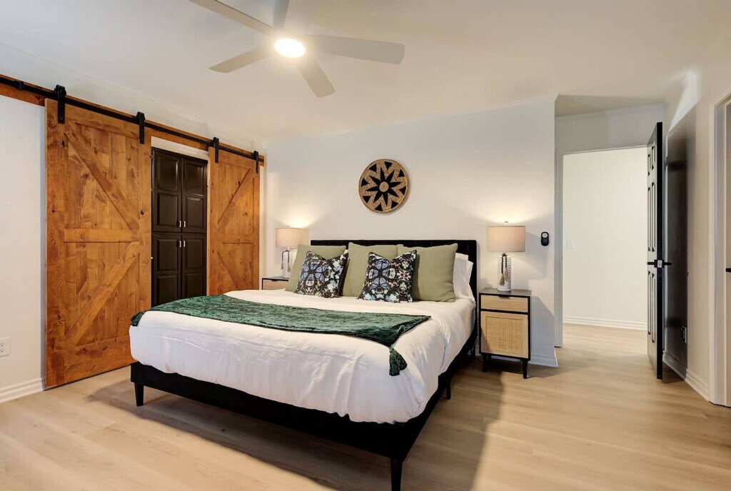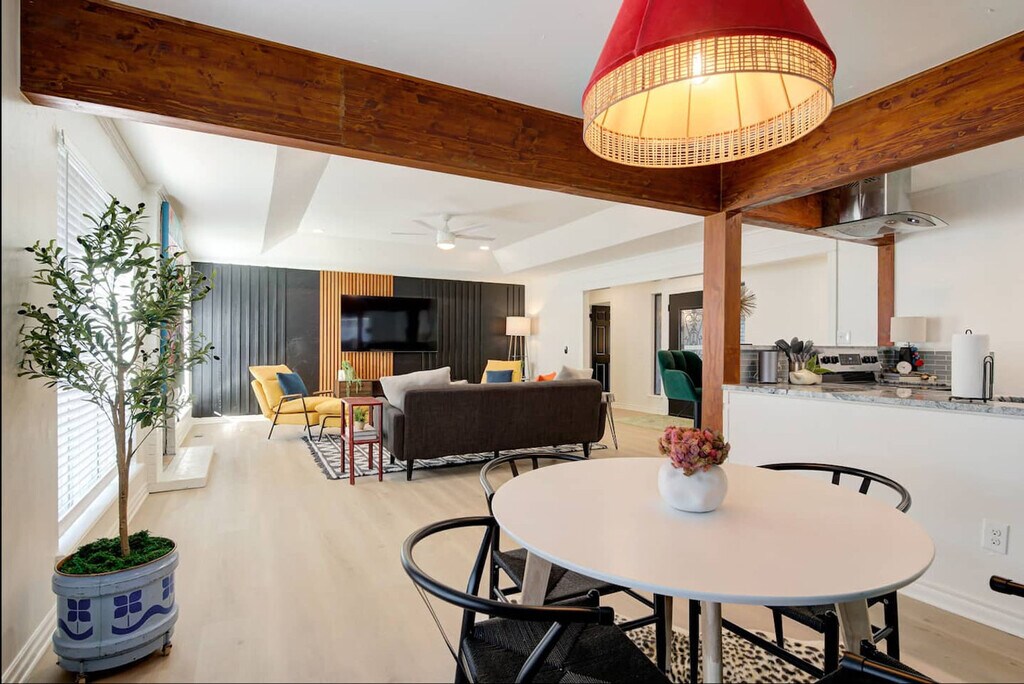 Feel at home in this mid-century retreat in Northwest Oklahoma City. This spacious 3-bedroom home comfortably accommodates up to 9 guests. This home features a fully equipped kitchen with cookware, utensils, and appliances. The open-concept living room is designed for relaxation and connection, with comfortable seating and a Smart TV. Enjoy the fun game room with a pool table, video games, darts, and a queen sofa bed. There are 6 Smart TVs, including two 75” screens. The private backyard offers space to relax and unwind. Driveway space is available for 2-3 vehicles. Located in a peaceful and family-friendly area of Northwest Oklahoma City, this neighborhood offers the perfect blend of comfort, convenience, and adventure. Quail Springs Mall and Chisholm Creek Entertainment District are a short drive away. Lake Hefner is just minutes away, offering walking and biking trails, fishing, sailing, and kite surfing. Enjoy waterfront dining at Lake Hefner and visit Stars & Stripes Park. No street parking is allowed. Registration Number: HS-00944-L [SI]