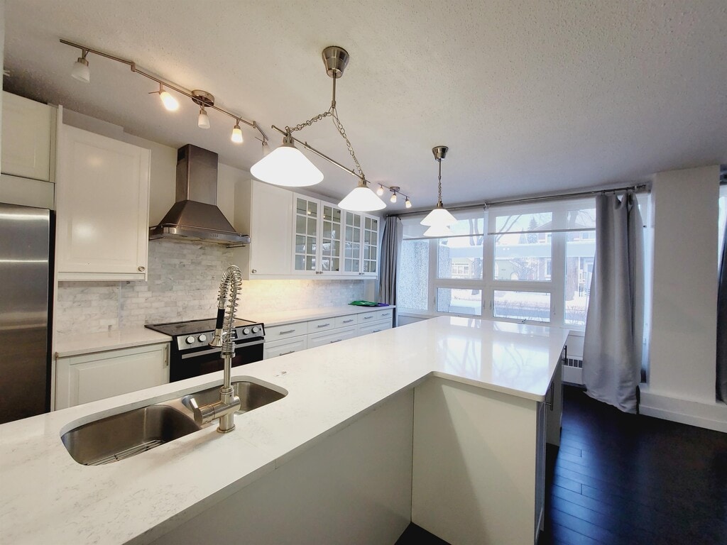 - Additional Property Details- Stylish apartment with amazing location. Within walking distance to UofA, hospital, Whyte Ave and all the amenities this trendy neighborhood brings. This 2 bedrooms, 1 bath unit is located on the main floor. This unit has been upgraded with new kitchen cabinets, countertops, neutral paint colors and more. Plenty of natural light and a peaceful outlook makes the place warm and inviting. Large trendy kitchen with tons of counter space and large eating bar. Large primary bedroom with individual his and her closets with organizers and lots of space for your wardrobe. Comes with portable washer unit in suite. There is also a laundry room in the building. Underground parking included. All major amenities are just within steps. Rent includes heat, water and parking. Apartment with 2 Bedrooms and 1 Bath; Varscona Tower in Garneau; Main floor unit; Laminate floor and Ceramic tile in Living space, kitchen; Trendy kitchen with tons of counter space; Large island; Large primary bedroom; His & Her Closets; Privacy window coverings throughout; Includes heat, water and parking; Walk to UofA, Hospital, Whyte Ave and more.