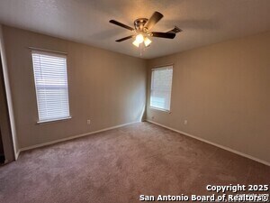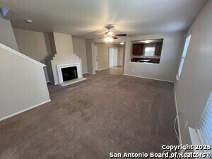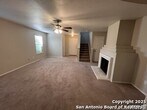 $1,545/month for a lease term of 18 months. $1,595/month for a 12-month lease. Step into this beautifully designed home and be welcomed by a spacious living area, ideal for entertaining or unwinding by the cozy fireplace. The open-concept layout seamlessly connects the living space to a stunning island kitchen, featuring generous counter space, abundant cabinetry, and all kitchen appliances for added convenience. Upstairs, the expansive owner's retreat offers a serene escape, bathed in natural light and complemented by a private en-suite bath. Two generously sized bedrooms offer versatile space for family, guests, or a home office. Step outside to a covered patio overlooking a fenced backyard shaded by mature trees, perfect for relaxing outdoors. Enjoy community perks including a sparkling pool, clubhouse, sports court, jogging trail and playground. Ideally located near shopping, dining, and easy access to Loop 1604.