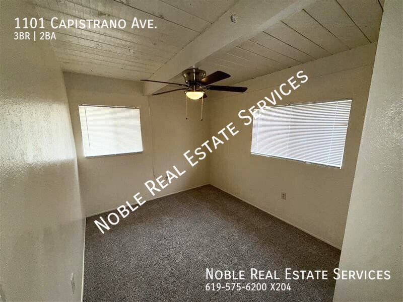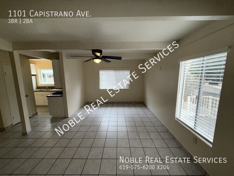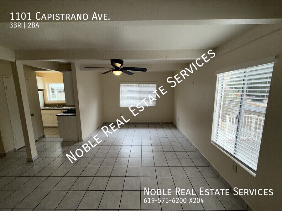 2595.00 Dogs ok Cats OK Pets ok (Breed Restrictions Apply) No Yes Deposit: $2595 **On Approved Credit** Welcome to 1101 Capistrano Ave, a spacious and inviting 3-bedroom, 2-bath home that blends comfort and convenience. Inside, you’ll find a bright open floor plan with tile flooring throughout, ceiling fans to keep you cool, and window blinds for added privacy. The kitchen offers plenty of counter space, perfect for preparing meals, while the adjoining dining and living areas create a warm and welcoming atmosphere for family or guests. This thoughtfully designed home features bedrooms both upstairs and downstairs, offering flexibility for your lifestyle—whether you need a private retreat, or a home office. Convenient washer and dryer hookups are included, making laundry simple and stress-free. Step outside to enjoy the generous covered back patio—ideal for relaxing, entertaining, or soaking up the fresh air. With its central location close to shops, dining, and freeway access, this home makes everyday living easy. Tenants are responsible for all utilities. Don’t miss the chance to make 1101 Capistrano Ave your next home—schedule a viewing today! (**If no showtimes are available, don’t worry! Go ahead and submit your info and our automated system will let you know when showtimes become available). Also, please be sure to click on the 'Apply Now' button to see all of our requirements and how we work! JG 9/2/25 eb No Noble Real Estate Services www.NobleProperties.info 1371 Presioca St. Spring Valley CA 91977 Yolanda, Emily, or Alex Option #1 2025/10/10 Balcony/Patio/Deck Bathroom Blinds Cabinets Closets Kitchen Parking Privacy Stove Washer And Dryer Connections