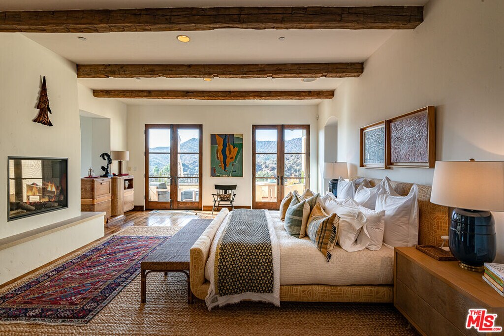 Set behind private gates in the Malibu Canyon area of Calabasas, this nearly five-acre Spanish Revival estate embodies timeless elegance, exceptional craftsmanship, and serene privacy. Designed by architect Doug Burdge, AIA, and designer Tammy Randall Wood, ASID, the residence offers five ensuite bedrooms and six bathrooms, including a stunning primary suite with a rotunda retreat, French doors, and a marble spa bath with a clawfoot tub overlooking the mountains. The home also features a 1,200-bottle wine cellar, 4K theater, safe room, and gym. The resort-style grounds include a heated saltwater pool and spa, bocce court, outdoor kitchen with an eight-burner Viking grill, multiple patios, and tranquil fountains amid mature landscaping. Smart home amenities include a Control4 automation system, 14-zone camera network, and whole-home audio and water filtration. A separate guest house offers a bedroom, bathroom, full kitchen, and two-car garage, complementing the main home's garage and gated motor court with parking for ten. Ideally located between Malibu Canyon and Mulholland, the property provides convenient access to Malibu, Calabasas, and award-winning Las Virgenes schools while bordering protected land for enduring privacy and unobstructed canyon views. MLS# 25616719