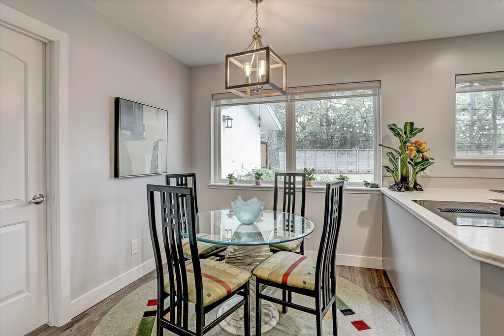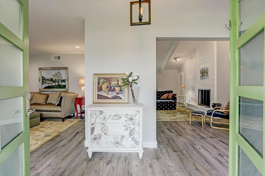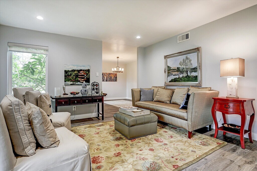 Great update mid-century 1 story home in Hilshire Village! Beautiful double door stone accented entry leads into formal dining with so much natural light. Chef's kitchen opens to high vaulted ceiling den with beam feature. Backyard is just gorgeous viewed from the den and kitchen. Amazing views to your own back yard are always a plus. Solid surface counter space and stainless steel appliances in kitchen. Updated primary bath and second bath just add to this homes character. The curb appeal on this home is top notch. Close to shopping,memorial city mall,retail centers,Costco and the Marq'E. So much to do to keep you busy in the area when you aren't tucked away in the serenity of this homes natural and updated features. This home will not last. MLS# 35028399