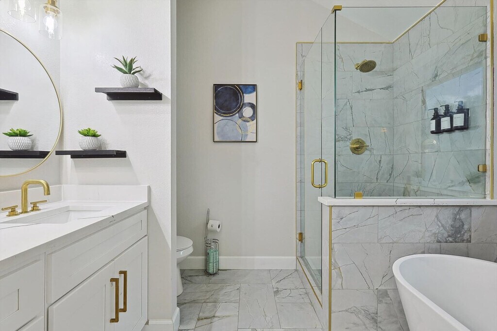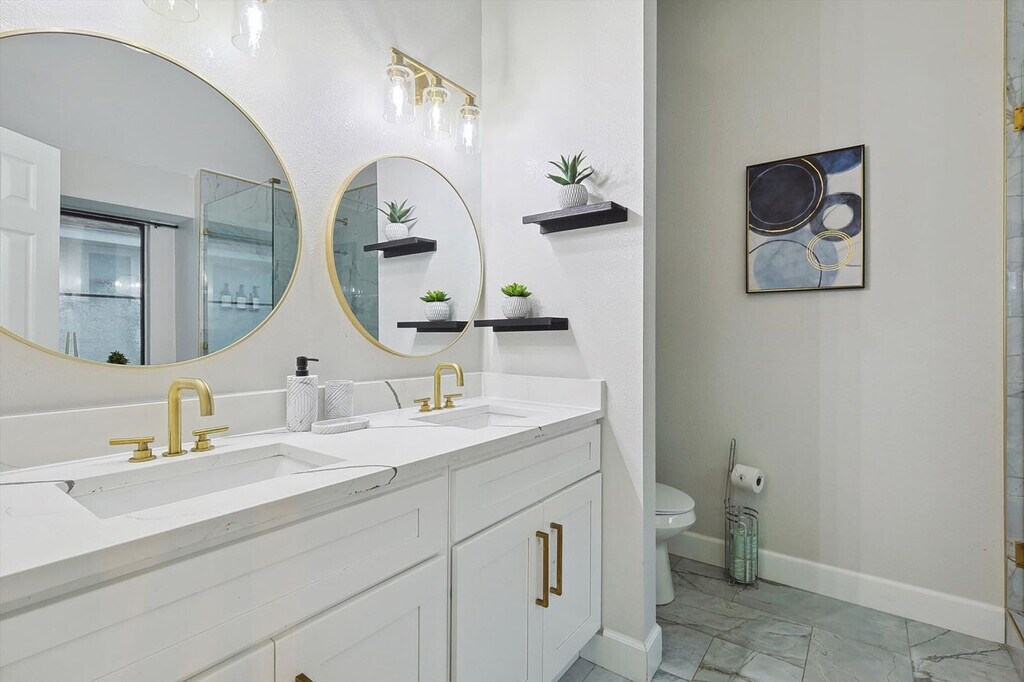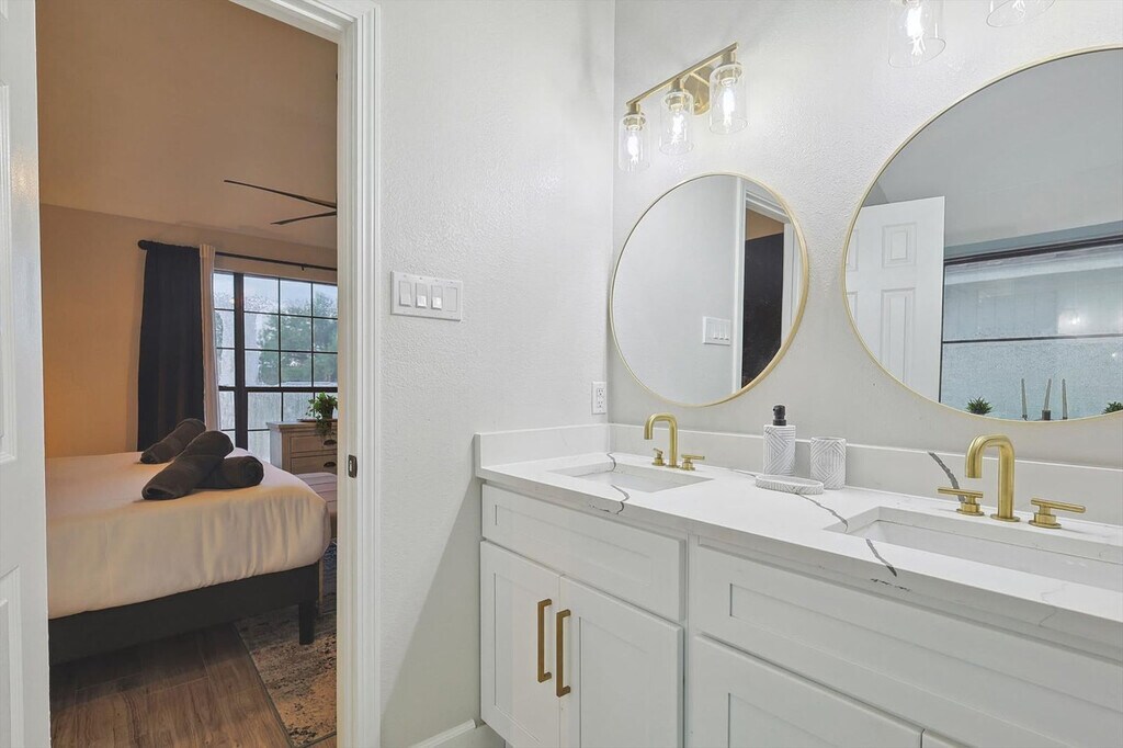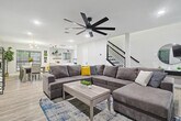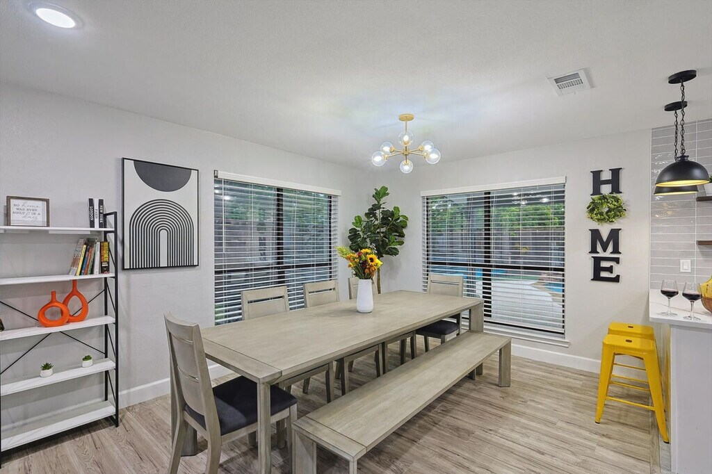 The advertised rate of $7,180/month is the lowest available price, based on a 1 month(s) stay with a move-in date of September 9, 2026. Rates vary depending on the duration of stay, season, and other parameters. For exact pricing and additional pricing components, please visit our website and enter your desired move-in and move-out dates. The rate is applicable when billed upfront; it can be higher if billed in multiple payments. Feel at home in this beautifully renovated home, located 26 miles from AT&T Stadium and just minutes from Lewisville Lake, parks, and trails. This home offers bright interiors designed for comfort and serves as a great North DFW base, offering relaxation, nature, and easy access to major attractions. Enjoy a private pool, fire pit, and BBQ area. The fully equipped kitchen makes cooking easy. Entertainment is provided by smart TVs with streaming apps. House-trained pets are welcome with a $150 fee per pet. From the seventh guest onwards, a $39 fee per guest per night applies. The fourth bedroom opens for groups of 6+ guests. This home is perfectly situated in a vibrant area with everything you need nearby. DFW International Airport is just 25 minutes away, and two grocery stores are only 4 minutes away. Lewisville Lake, just 6 minutes away, offers a variety of outdoor activities like water sports, golf, and swimming. Heritage Park is 7 minutes away, Grapevine Mills Mall and The River Walk at Central Park are 10 minutes away, Rheudasil Park is 5 minutes away, Twin Coves Park is 10 minutes away, Grapevine Vintage Railroad is 15 minutes away, and Six Flags Over Texas is 35 minutes away. Only registered guests are allowed. Quiet hours are from 10 p.m. to 9 a.m. Smoking indoors is strictly forbidden, and guests that break this house rule will receive a $500 penalty. The home's sleeping arrangements are as follows: Primary Bedroom: King Bed (2nd Floor) Bedroom 2: King Bed (2nd Floor) Bedroom 3: Queen Bed (2nd Floor) Bedroom 4: Twin-Over-Twin Bunk Bed + Twin-Over-Full Bunk Bed (2nd Floor) Bathroom 1: Full Bathroom Bathroom 2: Full Bathroom Bathroom 2.5: Half Bathroom [SI]
