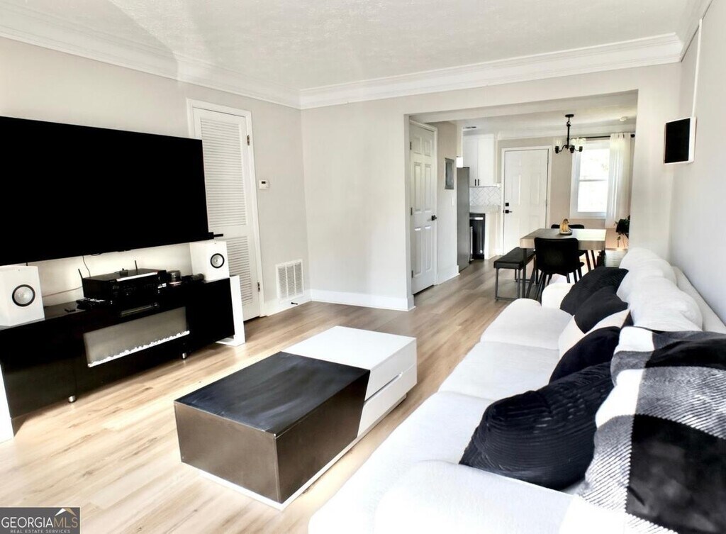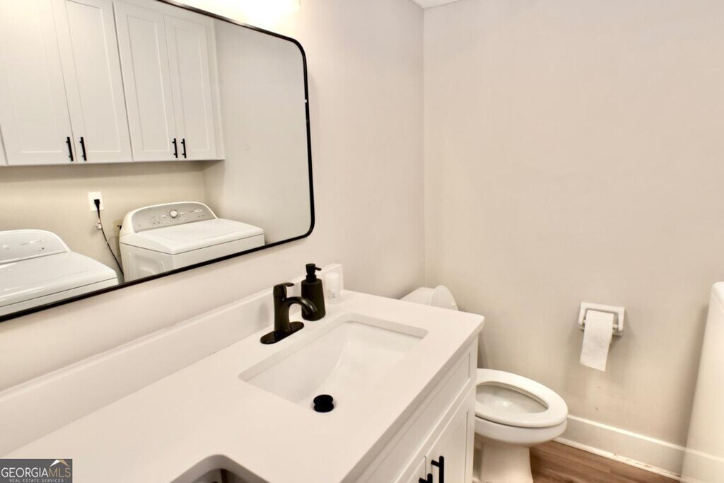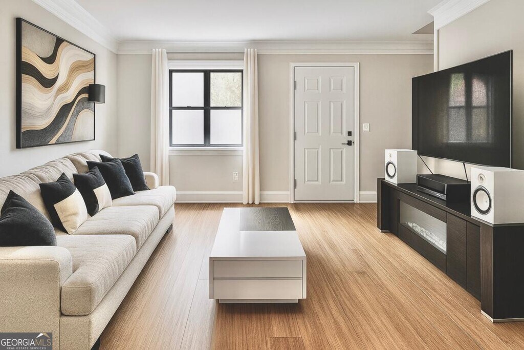 This beautifully renovated two-bedroom, one-and-a-half-bath end-unit townhome combines modern style with everyday convenience. The kitchen showcases stainless steel appliances, crisp white cabinetry, quartz countertops, and a striking herringbone backsplash, while the living area is filled with natural light and a fresh, contemporary look. Both bathrooms have been tastefully updated, and the two bedrooms offer comfortable layouts. Throughout the home, hardwood-style flooring adds warmth and durability, complemented by the convenience of a full-size washer and dryer. For added flexibility, the home is available furnished (for an additional fee) or unfurnished. Ideally located right in the heart of downtown Sugar Hill. Short distance to shopping, dining, and entertainment, wifth quick access to major highways for an easy commute. Highly rated Sugar Hill School District! *Some Photos are AI enhanced/Staged.*