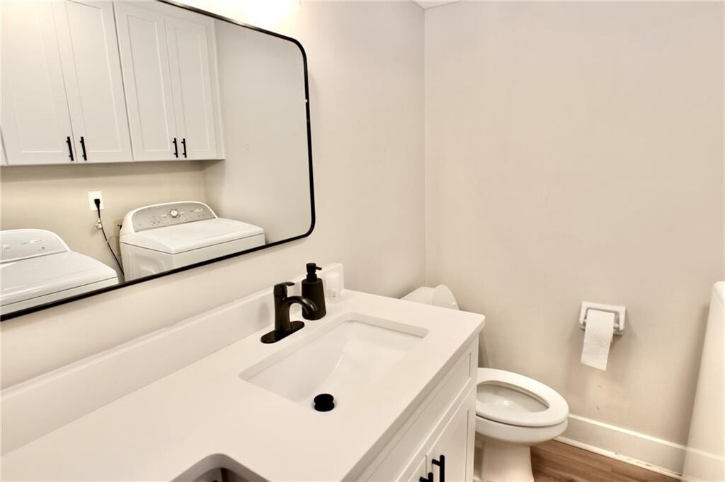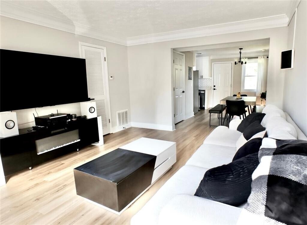 This beautifully renovated two-bedroom,one-and-a-half-bath end-unit townhome combines modern style with everyday convenience. The kitchen showcases stainless steel appliances,crisp white cabinetry,quartz countertops,and a striking herringbone backsplash,while the iving area is filled with natural light and a fresh,contemporary look. Both bathrooms have been tastefully updated,and the two bedrooms offer comfortable layouts. Throughout the home,hardwood-style flooring adds warmth and durability,complemented by the convenience of a full-size washer and dryer. For added flexibility,the home is available furnished or unfurnished. Ideally located right in the heart of downtown Sugar Hill. Short distance to shopping,dining,and entertainment,with quick access to major highways for an easy commute. Highly rated Sugar Hill School District! *Some Photos are AI Enhanced/staged*