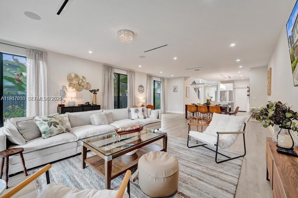 Beautifully furnished, this modern townhome, built in 2024, is just minutes from Las Olas Blvd and the beach. First Level: The first floor features a spacious open-concept living and dining area, perfect for entertaining. A modern half bath provides convenience for guests, and the large garage with private driveway ensures easy access. Second Level: Upstairs, you'll find 4 bedrooms and 3 full bathrooms, including a primary suite with a cozy seating area and a large balcony with open views. A washer and dryer are conveniently located on this level, and ample closet space is found throughout. Outdoor & Additional Features: Fenced backyard. At 3,600 sq. ft., this is the largest townhouse in the area. This immaculate smart home offers contemporary elegance with sleek, modern finishes throughout. Available Furnished or unfurnished. 1 car Garage. MLS # A11957910