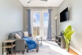LOCATION, LOCATION, LOCATION! This fully furnished 2-bedroom, 1-bath Uptown studio, steps from Bank of America Stadium, boasts an open kitchen flowing into the living room, a spacious master bedroom, a second bedroom, and a laundry closet. Enjoy city views from the private deck and the convenience of Uptown living! LOCATION, LOCATION, LOCATION! This fully furnished 2-bedroom, 1-bath Uptown studio, steps from Bank of America Stadium, boasts an open kitchen flowing into the living room, a spacious master bedroom, a second bedroom, and a laundry closet. Enjoy city views from the private deck and the convenience of Uptown living!
