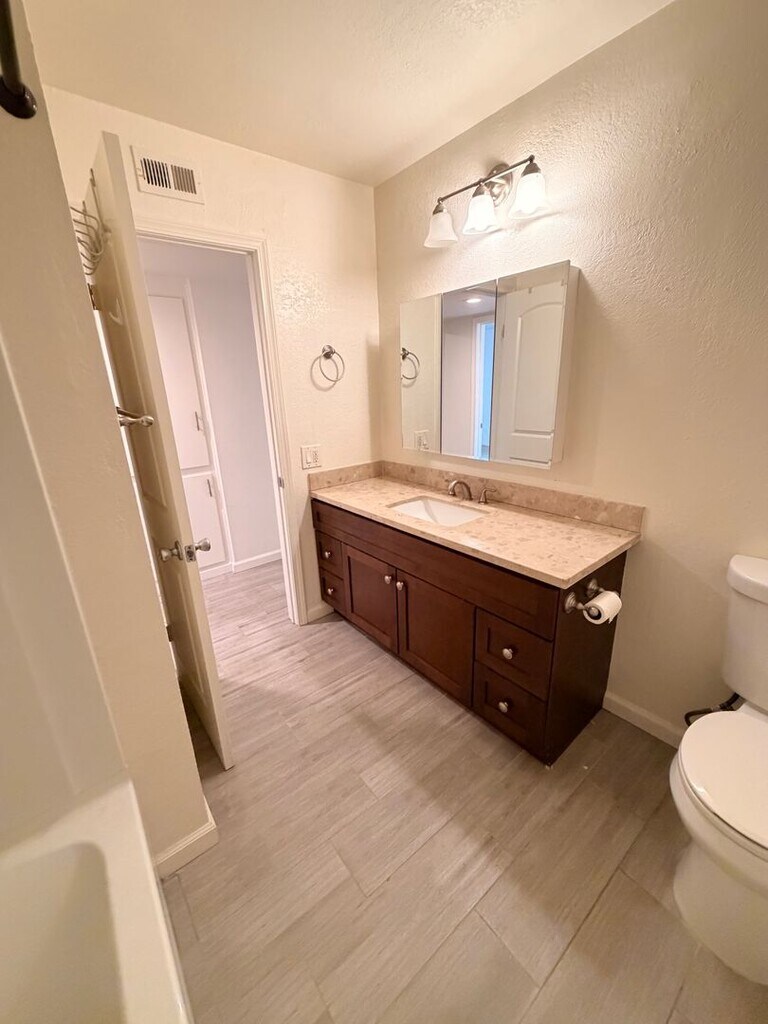 This is a lovely 2 bed, 2 bath unit in a very nice gated complex in the South Coast Metro area of Santa Ana. Very clean and ready for move in ASAP! Features: -2 Bedrooms -2 Bathrooms with nice updates (Like new vanities, fixtures, flooring and shower enclosures) -914 Square feet of living space (upstairs unit) -Recessed lighting throughout -Large master bedroom with en-suite bathroom and very large walk-in closet -Central AC/Heat -Updated kitchen with granite countertops and stainless steel appliances (refrigerator, microwave, range stove/oven, dishwasher) -Beautiful wood grain ceramic tile throughout -Lovely balcony off of living room -One covered parking spot included w/ extra storage space above parking spot, one parking permit to park in uncovered spaces anywhere in the complex -HOA Swimming pool and jacuzzi -HOA gym and clubhouse -HOA laundry facility on site -HOA BBQ area and playground area -HOA EV charging station (first come first served) -Water and trash included with the rent -12 month lease agreement w/ security deposit on approved credit -Renters insurance required -$35 per application per adult -No smoking on premises -Incomplete applications will not be considered If you would like to view this property, please call: Pacific Trust Property Management