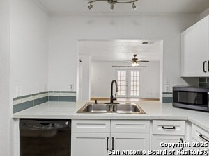 Welcome home to 11010 Victors Hill. Charming property located just off of Loop 1604 and Shaenfield in West San Antonio. Easy commute to UTSA, IH10, La Cantera, Valero, UTSA, Medical Center. Well maintained updated home featuring an open floor plan that is great for entertaining. The kitchen boasts solid white countertops, a gorgeous backsplash, and refrigerator, microwave, stove and dishwasher. The home includes 3 spacious bedrooms and 2 updated bathrooms, many windows for natural light, and french doors leading to the backyard. Enjoy the beautiful landscaping and the vicinity to the community park, which is just a few blocks away. Community amenities include: pool, park, playground, jogging trails, sports court. Ready for move in, lease this home today!