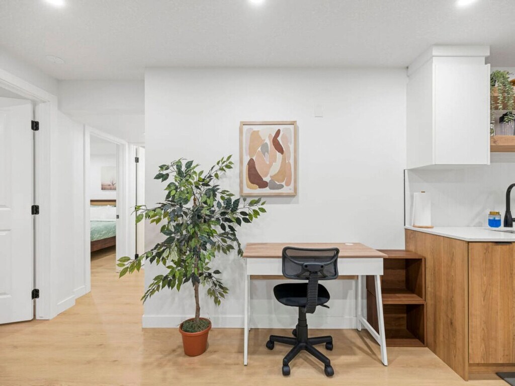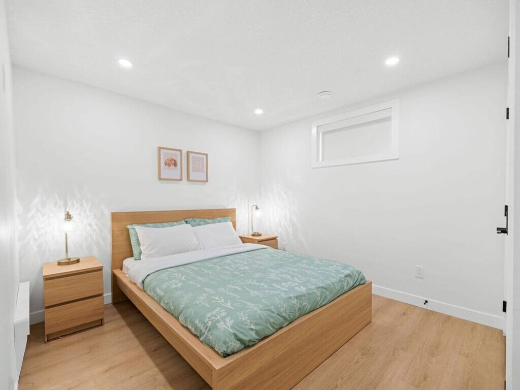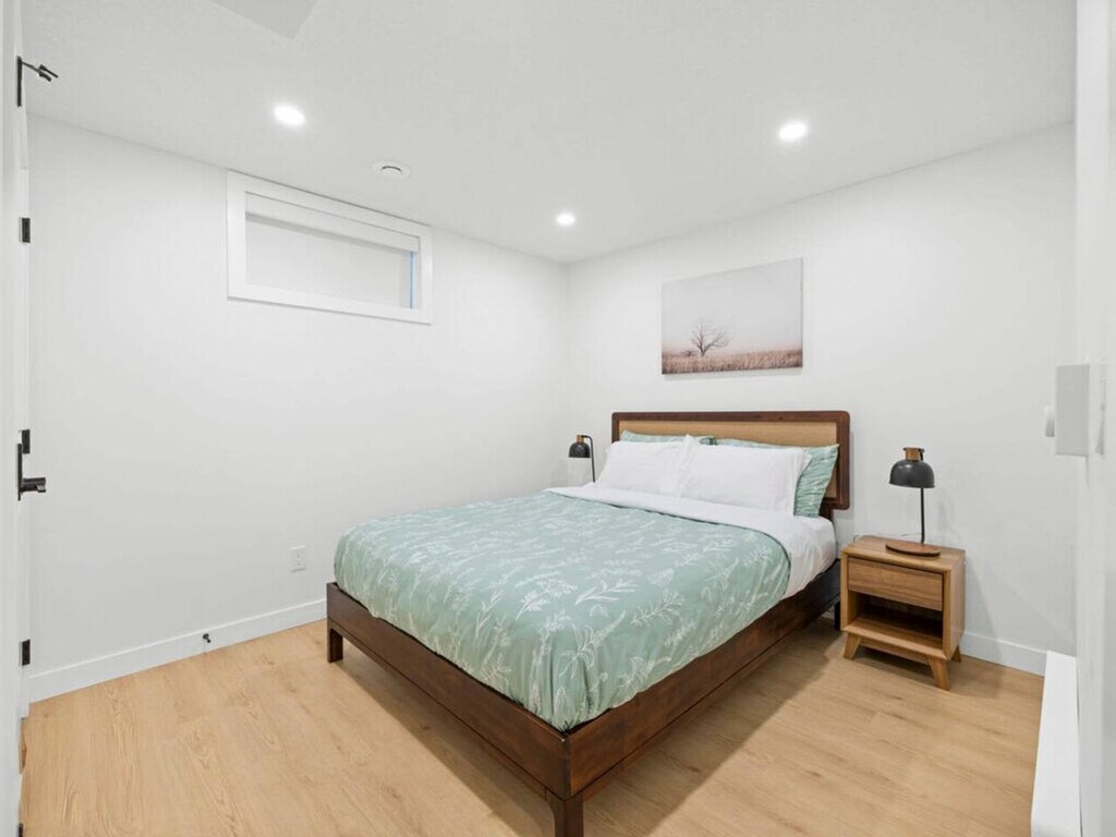 Kick back and relax in this calm, stylish basement suite in High Park, Edmonton. This cozy home comfortably accommodates up to 5 guests, offering a relaxing and well-equipped retreat. Located just minutes from parks, dining, West Edmonton Mall, and downtown, this suite is perfect for both short-term and long-term stays. Enjoy fast Wi-Fi, perfect for remote work, and the convenience of self check-in. The suite features a fully equipped kitchen and in-suite laundry, ensuring a comfortable stay. Welcome yourself inside this stylish and comfortable 2-bedroom, 1-bath basement suite, minutes from shopping centres, walking and biking trails, and Anthony Henday for access to anywhere in the city. Inside the home, you can watch your favourite shows on the Smart TV, stream Netflix (subscription required), or work from home with fast Wi-Fi and desk space. The fully stocked kitchen is equipped with stainless steel appliances, including a microwave, fridge, electric stove, and dishwasher, along with glasses, mugs, dishes, cutlery, and more. There is no garage or driveway access for this property, but plenty of free street parking is available around the home. Welcome to High Park, one of Edmonton’s charming and peaceful neighborhoods, perfect for your next stay. Just minutes from downtown, High Park offers a blend of tranquility and convenience, making it ideal for families, friends, or small groups exploring the city. Step outside to enjoy tree-lined streets and nearby green spaces like High Park and Coronation Park, perfect for morning walks or afternoon picnics. Local cafes, restaurants, and shops add to the charm, while easy access to major roads and transit makes getting around a breeze. Edmonton is a driving city, so having your own transport is recommended, but several options exist for those without a personal vehicle. Convenient bus routes connect you to Edmonton’s Bus and train system, making it easy to explore the city. Ride-sharing services are readily available and provide quick, hassle-free transportation. Ample street parking is available, along with designated spots on the driveway. The neighborhood is car-friendly with easy access to major roads nearby. The main floor is occupied by other guests, but is separated from the basement for full privacy and safety. Quiet hours are from 10 PM to 8 AM, and a $500 fee will be charged if there is evidence of any unauthorized events or parties on the property. Pets are not permitted, and a $250 fee will be charged if there is evidence of any unauthorized pets. Smoking and drug use are strictly prohibited, with a $250 fee for evidence of smoking inside. A $50 fee will apply if you check out more than 30 minutes past the scheduled time without prior notice or approval, with additional charges for further delays. Unauthorized guests will incur a $40 fee per person per night. Violations of any house rules may result in immediate removal from the property without a refund. The home offers fast Wi-Fi and desk space, making it perfect for remote work. Registration Number: 547492677-001