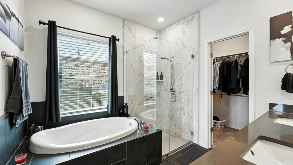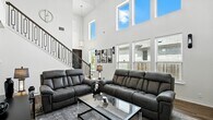 Step into luxury with this beautifully furnished two-story home featuring a grand open layout and upgraded finishes throughout. The main living areas boast upgraded wood-look tile offering both style and durability. The chef-inspired kitchen showcases a large island, crisp white cabinetry, premium Quartz countertops, and built-in stainless steel appliances—perfect for cooking and entertaining. Downstairs includes a spacious secondary bedroom and a full bathroom, ideal for guests or a home office setup. The expansive master features a charming bay window and a spa-like en-suite bath with a separate shower and a luxurious 5’ drop-in tub. Don’t miss your opportunity to live in comfort and style! Available furnished at same price. Davis Ranch