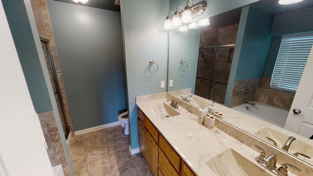 Beautiful home in Jenks in gated neighborhood of Augusta Greens w/mini golf! 4 bedrooms, 2.5baths, 2 living areas, granite kitchen, formal dining room, 2 covered patios, safe room, & 3 car garage. Big yard, w/sprinkler system & weekly mowing included. Refrigerator included. Great highway access, Tulsa Hills nearby. $1000 Security Deposit, $750/pet Non-refundable/approved pet fee, $30 application processing fee/person over 18. Professionally managed by Skyline Realty LLC. 3-D tour available.