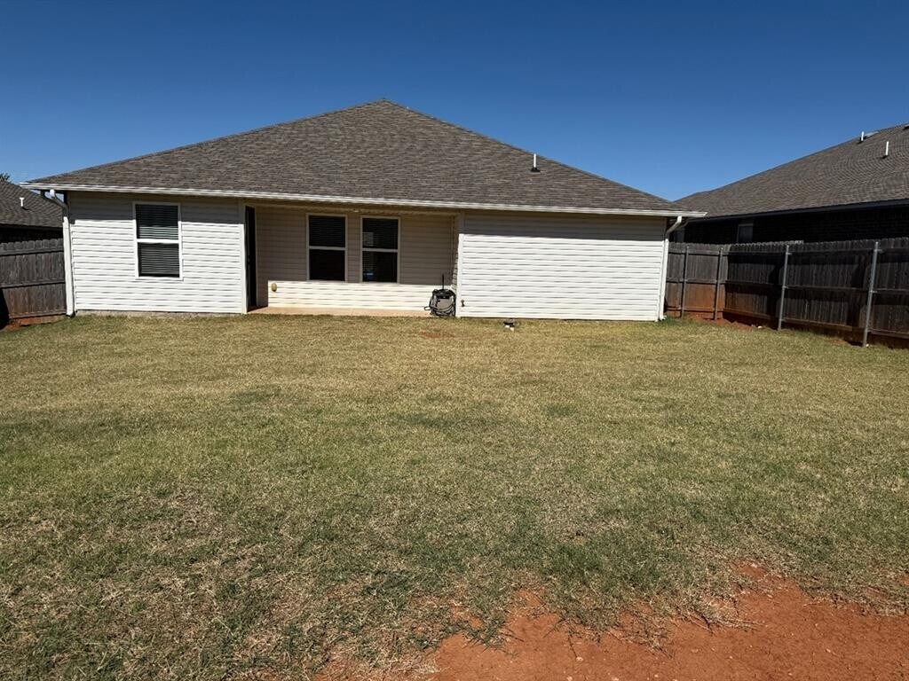 This 3 bed 2 bath 2 car garage is located in the sought after Yukon neighborhood minutes away from the Kilpatrick Turnpike and easy access to OKC. This home is spacious and has an open floorplan featuring plenty of natural light. The kitchen has quartz countertops,an apron sink,ample cabinets and a walk in pantry. The primary suite is spacious and has a walk in closet. The back yard is fenced and the patio is covered. Enjoy hot water on command with this tankless water heater. Pets welcome