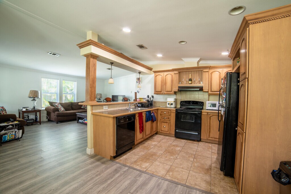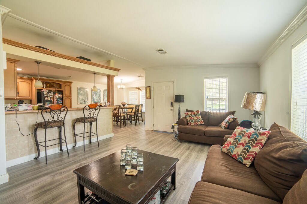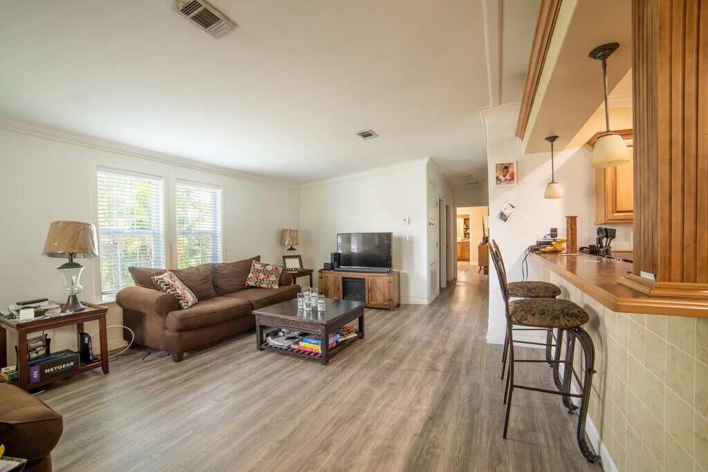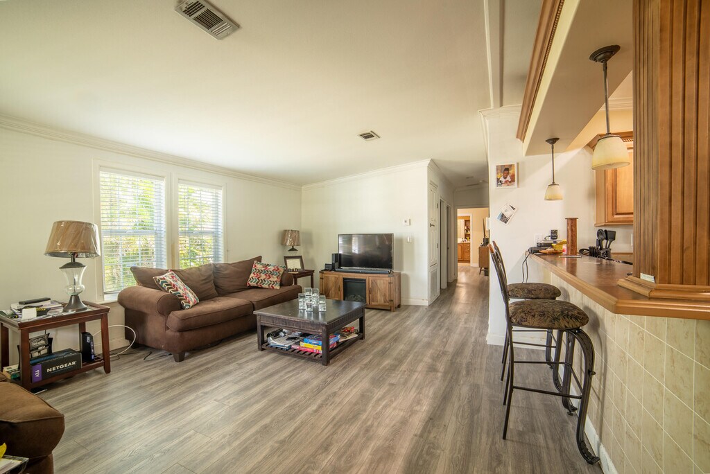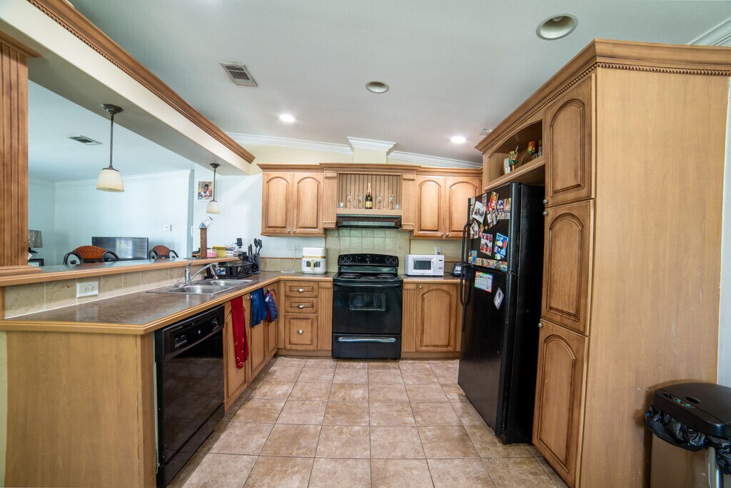 Beautiful 4-Bedroom Home with Upgrades & Prime Location! Welcome to this Updated 4-bedroom, 2-bathroom home, designed for comfort, style, and peace of mind. Featuring hurricane impact glass windows and a fenced-in backyard, this property offers safety and privacy for your family.Inside, enjoy an open floor plan with vaulted ceilings and crown molding throughout. The upgraded kitchen boasts elegant countertops, a tile backsplash, and wooden cabinets with crown molding perfect for cooking and entertaining. The spacious master suite includes a large walk-in closet and a luxurious ensuite bathroom with dual sinks, custom cabinetry, and a separate shower. Located adjacent to Coleman Park Community Center with, children's tot lot, swings.