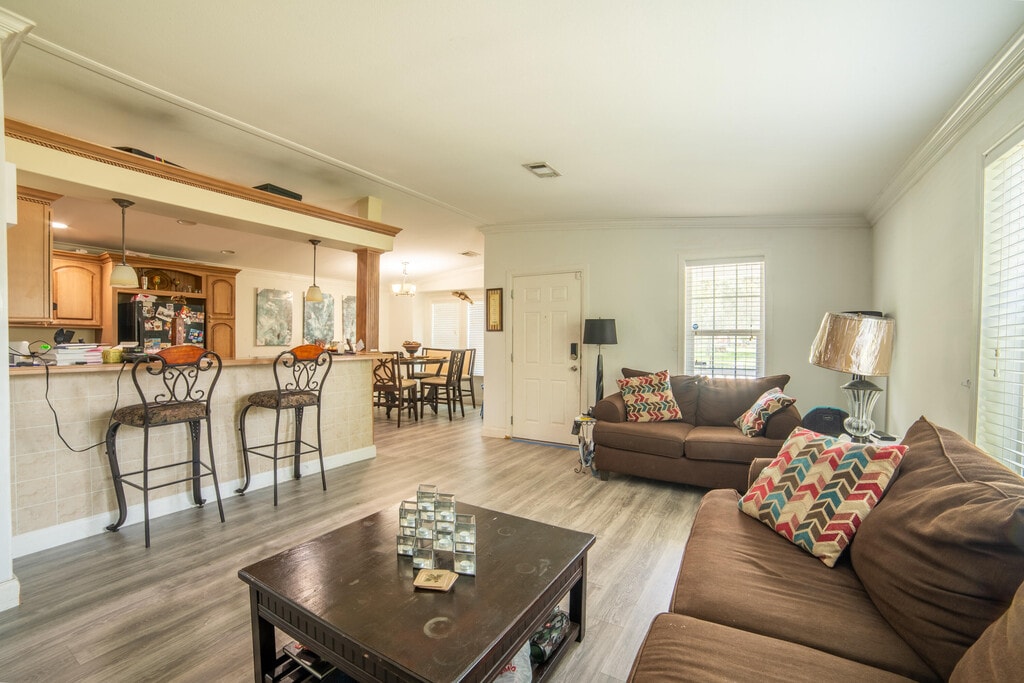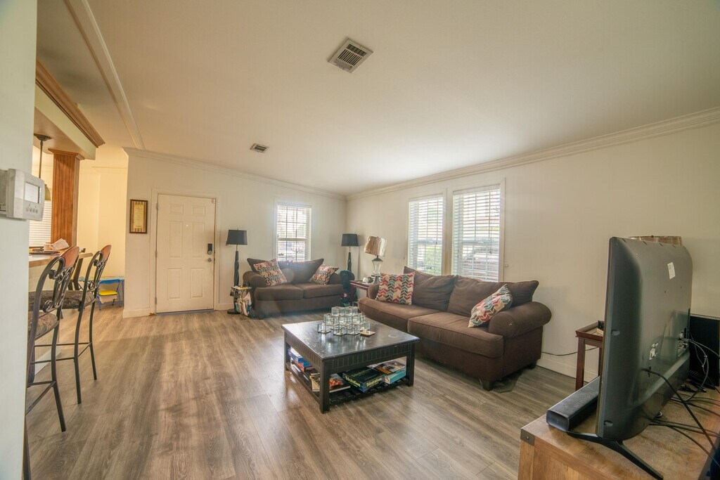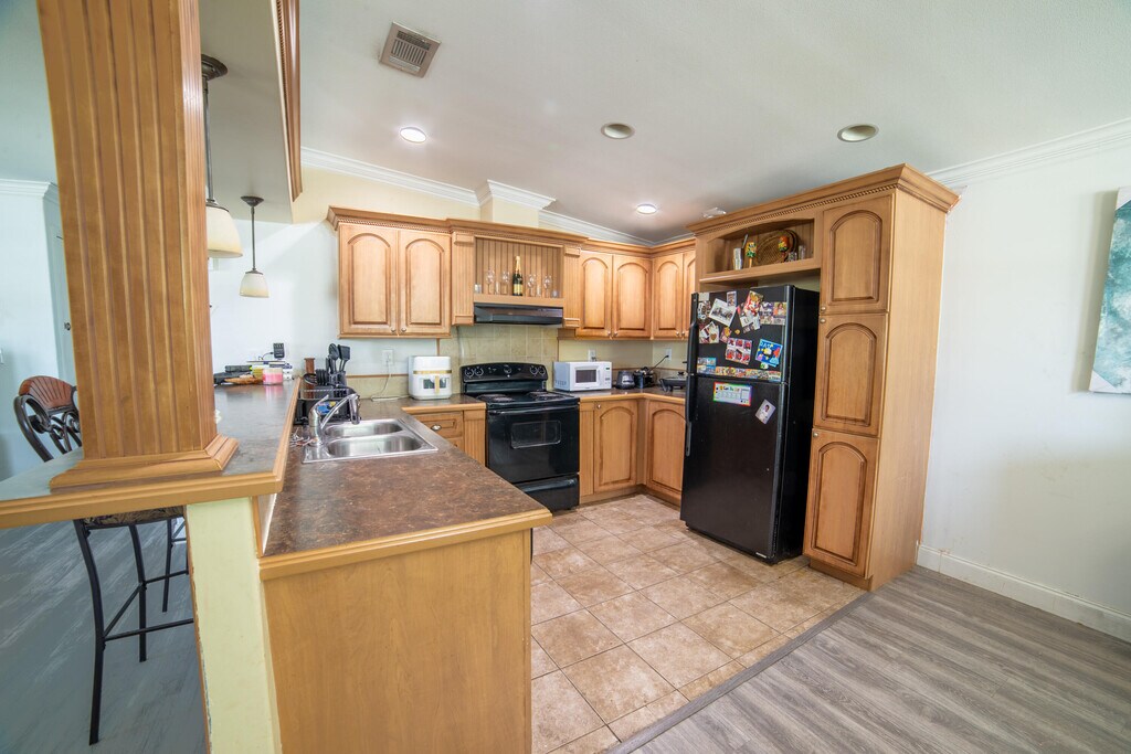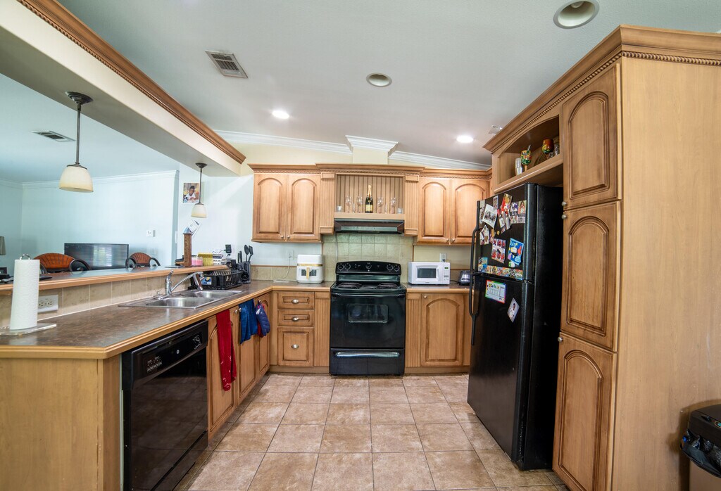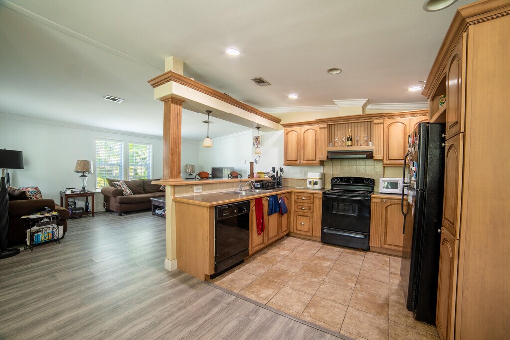 Beautiful 4-Bedroom Home with Upgrades & Prime Location! Welcome to this Updated 4-bedroom, 2-bathroom home, designed for comfort, style, and peace of mind. Featuring hurricane impact glass windows and a fenced-in backyard, this property offers safety and privacy for your family.Inside, enjoy an open floor plan with vaulted ceilings and crown molding throughout. The upgraded kitchen boasts elegant countertops, a tile backsplash, and wooden cabinets with crown molding perfect for cooking and entertaining. The spacious master suite includes a large walk-in closet and a luxurious ensuite bathroom with dual sinks, custom cabinetry, and a separate shower. Located adjacent to Coleman Park Community Center with, children's tot lot, swings.
