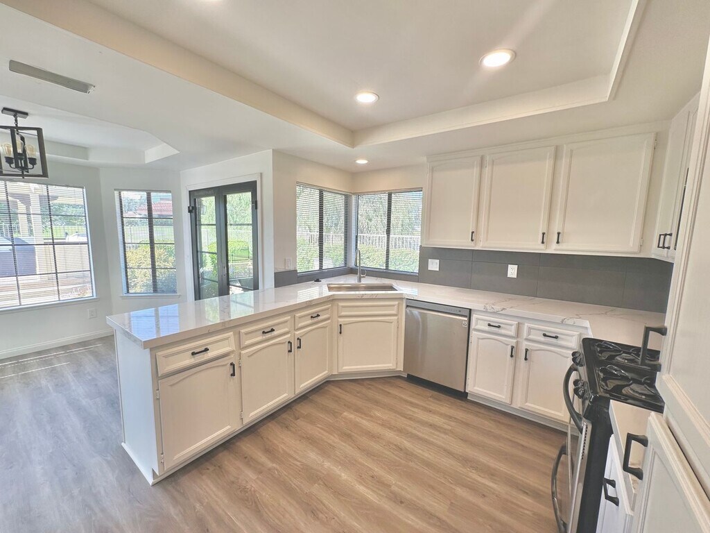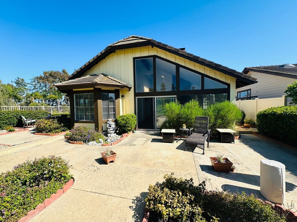 Welcome to the 3 bed 2 bath single story home in the Shadowridge Community on the Greens, located in the beautiful city of Vista. This home is a golfer's paradise, situated right on the golf course, offering open views of the lush greens. The house is bathed in natural light, thanks to the skylights and large windows. The single-story layout is accentuated by vaulted ceilings, creating a spacious and airy atmosphere. The home features a unique 2-sided fireplace that opens to both the dining room and living room, perfect for cozy evenings. The property is situated on a corner lot, providing additional privacy. The backyard is a highlight with a charming gazebo, ideal for outdoor relaxation. Although there is no fence in the backyard, pets are welcome upon landlord approval. The home is conveniently located just minutes from freeway access, making commuting a breeze. Experience the perfect blend of comfort, convenience, and luxury in this stunning home in the Shadowridge Community on the Greens.