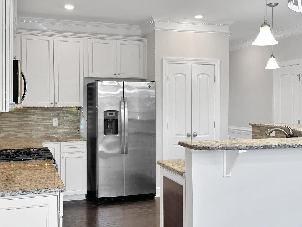 Welcome to refined living in the desirable Magnolia Glen Estates community of Mebane. This spacious end-unit home offers the perfect blend of comfort, functionality, and modern appeal. Featuring 5 bedrooms and 4 full bathrooms, this home provides an ideal layout for both everyday living and entertaining. The main level includes a generously sized bedroom with a full bathroom-perfect for guests or multi-generational living. Hardwood flooring enhances the main living areas, including the entryway, formal dining room, kitchen, and living room, while the main-level bedroom features comfortable carpet. The open-concept kitchen is the heart of the home, featuring granite countertops, ample cabinetry, and a seamless flow into the main living and dining areas-ideal for gatherings and hosting. Upstairs, the second level features a luxurious primary suite designed as a private retreat, complete with a spa-inspired bathroom featuring a soaking tub and a large walk-in closet. Two additional bedrooms and a full bathroom complete this level. A spacious loft area offers additional living space and opens to a covered porch-perfect for relaxing or enjoying your morning coffee. The conveniently located second-floor laundry room adds everyday ease and functionality. All additional bedrooms feature carpet flooring. The third floor provides even more flexibility with a large additional bedroom and its own full bathroom-ideal for a guest suite, private office, or bonus space. Additional features include a two-car garage and well-appointed living spaces throughout. Enjoy the lifestyle that Magnolia Glen Estates has to offer, including a community pool, playground, and volleyball court-providing both relaxation and recreation right within your neighborhood. Conveniently located near major highways, shopping, and dining, this home offers easy access to both the Triad and Triangle. Don\'t miss your opportunity to rent this beautifully designed end-unit home in one of Mebane\'s most sought-after communities.