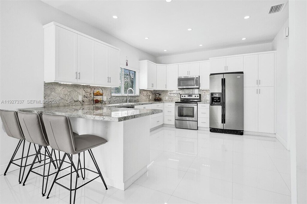 Completely remodeled corner pool home with an open floor plan, owners thought of all details when remodeling this beauty. Impact windows and doors, porcelain tile throughout, wood flooring in bedrooms, updated kitchen cabinets with plenty of storage space, granite countertop and backsplash, each bedroom with their own private bathroom, cabana bath, pool, safety fence around pool, oversized laundry room with additional cabinet storage, camera system, walk-in closets, wood fence around entire property. This property is a must see, show and rent. MLS # A11927337