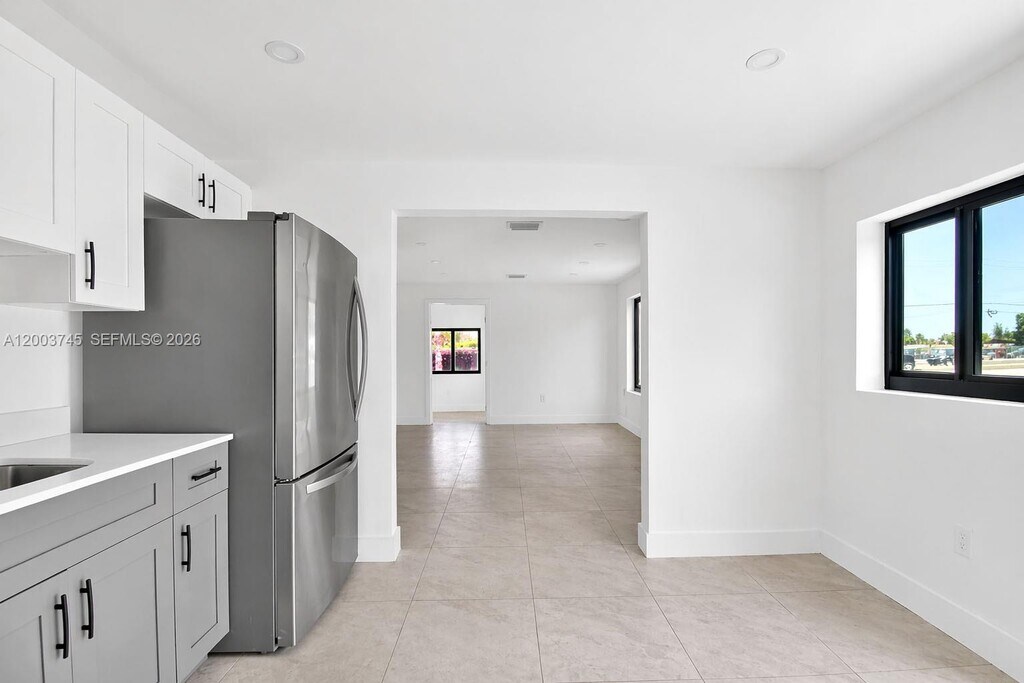 Beautifully renovated 3-bedroom, 2-bath unit in Miami offering modern comfort and convenience. The bright and spacious living area is filled with natural light, creating an inviting and airy feel. The open-concept kitchen features sleek granite countertops and stainless steel appliances, perfect for everyday living and entertaining. Both bathrooms have been tastefully updated, and the unit includes impact windows for added safety and energy efficiency. A newer central AC system ensures year-round comfort. Enjoy the convenience of an in-unit full-size washer and dryer. All bedrooms are generously sized with ample natural light. The primary suite features a private bathroom with double vanity and walk-in shower. Move-in ready. No association approval required. MLS # A12003745