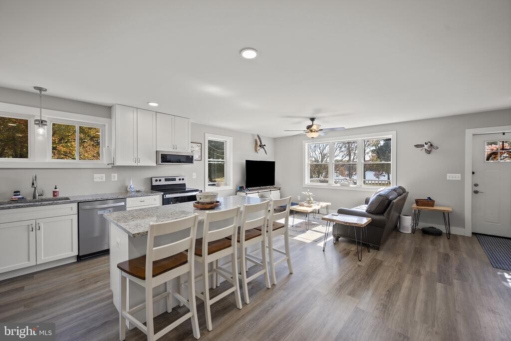 Escape to this beautifully updated 1-bedroom, 1-bath water view cottage tucked on a large private lot with access to the water — perfect for fishing, kayaking, or launching your canoe. Inside, you’ll find a completely renovated interior featuring luxury vinyl plank flooring, fresh paint, and a full modern kitchen with stainless steel appliances. The open layout captures the light and stunning views from every angle, creating a peaceful retreat that feels brand new. Step outside to the expansive deck with gorgeous water view-- the ideal spot for morning coffee, evening sunsets, or watching wildlife drift by. The unfinished basement provides plenty of extra storage, while the large driveway offers ample parking for vehicles and trailers. This property combines the best of modern comfort and waterfront lifestyle — quiet, private, and ready for your next adventure. Fur babies welcome —with no additional pet deposit!