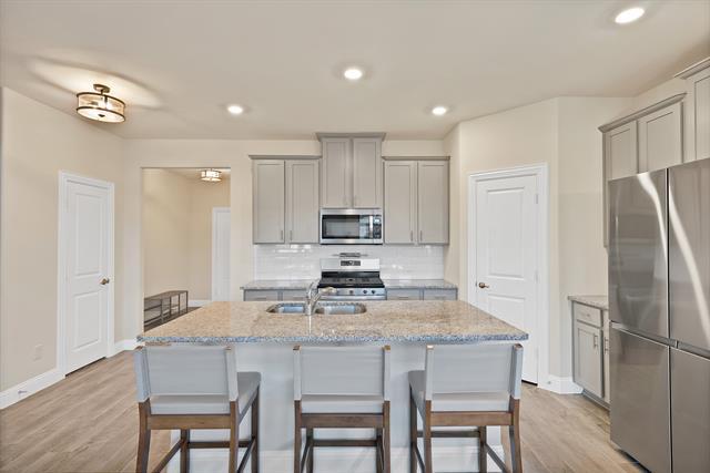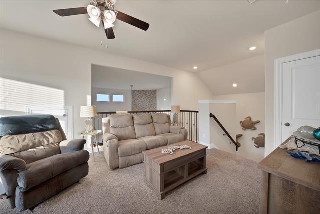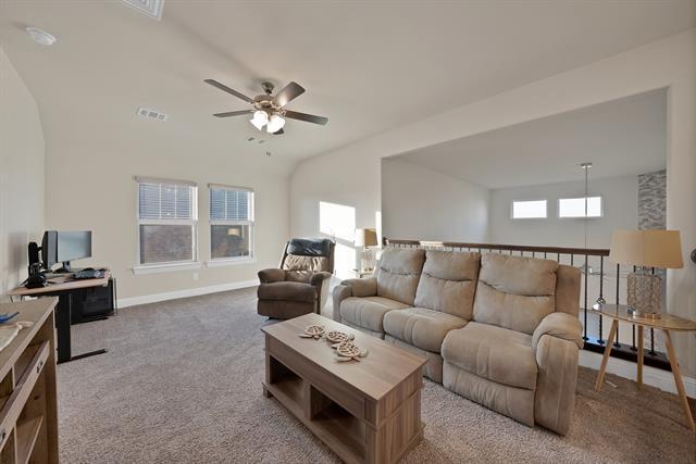 REFRIGERATOR INCLUDED!! Welcome to this exceptional home in the desirable Silverado community! This Brunswick model is thoughtfully designed 2,208 square feet of open and comfortable living space with four spacious bedrooms and three full bathrooms. Upon entering the home you will appreciate the seamless flow of the open-concept layout, perfect for both everyday living and entertaining guests. The heart of the home features a striking floor-to-ceiling stone fireplace that adds warmth and architectural character to the main living area. Large windows throughout the home allow abundant natural light to enhance the inviting atmosphere, while modern finishes and thoughtful details elevate every space. The kitchen, living, and dining areas work together effortlessly, creating a welcoming environment for gatherings and daily life. The primary suite is oversized including an expansive walk-in closet. Step outside into your large backyard, complete with a built-in fire pit that provides an ideal setting for relaxing evenings or memorable outdoor gatherings with friends and family. The main community center features a resort-style pool with kids splash pool, clubhouse, basketball and pickle ball courts. There are two elementary schools, two more additional pools, fire and police department in the community! Walking paths, dog parks, and playground areas provide opportunities for outdoor enjoyment! Located in a fast-growing area with easy access to nearby shopping, dining and outdoor recreation, this home offers the perfect blend of style, space and functionality in one of Aubrey’s most sought-after communities. Do not miss your chance to make this exceptional property your new home!