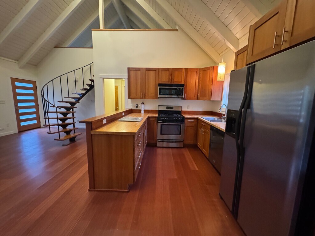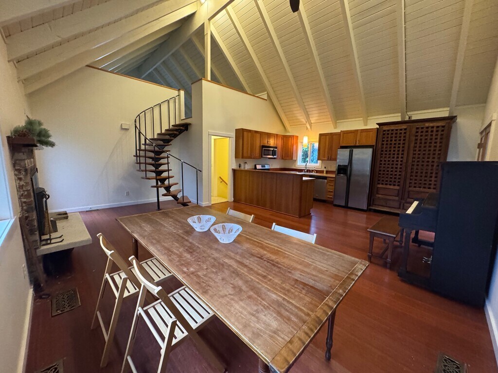 Don't miss out on this fabulous home on Vashon's north end! 3 story home with the main living spaces (Living room, dining room and kitchen) on the second floor as well as 2 bedrooms and a bath. The living room, dining room and kitchen are in a large open space with vaulted ceilings and also have a cozy fireplace. French doors lead to an elevated spacious deck with forest views and access to the side and back yard. The back yard is fenced. A spiral staircase in the living room leads to a wide open loft with that could be used for recreation, office, storage or even an additional bedroom. The loft has a Juliette stye balcony with great views of Colvos Passage, the Olympics and the Southworth Ferry. Downstairs on the ground level floor, there is another entrance, an additional bedroom and bath, and the laundry area. Also on this floor is a 1 car garage, so the house has plenty of dry storage or room for a workshop. Outside, there is a small front yard and also some raised beds where you can garden to your hearts content. The property is in a great neighborhood, walking distance to the northend ferry terminal, and also has access to a beach in the neighborhood! Fresh paint and new carpeting throughout home! Small dogs negotiable, no cats please. Visit our website for rental criteria and online application: https:\\ Contact: Jan Neutz VMI Property Mangement (voice mail) (voice mail or txt capable)