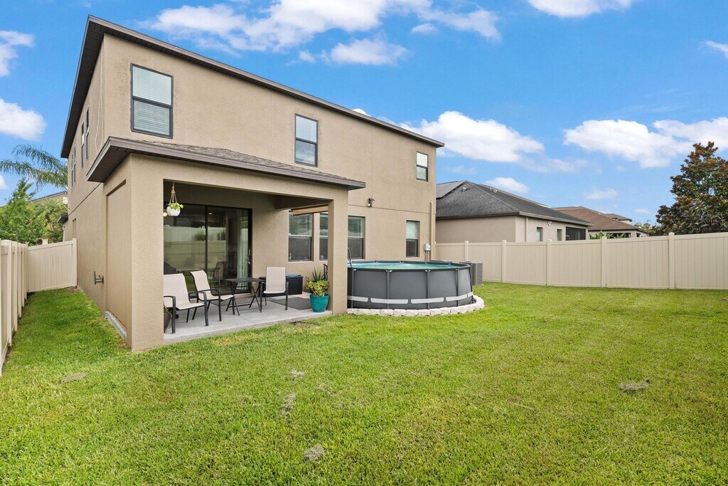 Our spacious 2-story home built in 2016. This property is located in the Oaks At Shady Creek, right off Highway 301. Plenty of room for the whole family, with a completely fenced-in backyard. Many upgrades throughout including upgraded espresso cabinets, granite countertops and stainless steel appliances. Close to shopping, 5-bedroom, 3 baths, 3 car garage, built-in office space, parents or guest room and bathroom, and an amazing 16X17 game room. This property is available as a rent to own home.
