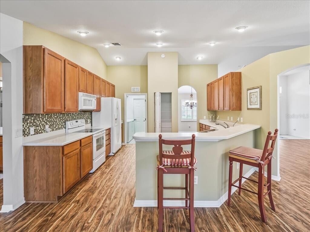 Long-term rental (12+ months),unfurnished and move-in ready,located in the desirable gated 55+ community of Stonecrest in Summerfield,Florida. This beautifully maintained Savannah model offers a spacious,functional layout with Luxury vinyl plank flooring and ceramic tile. Cathedral ceilings and recessed lighting that create a light and bright,open feel. The home features a welcoming foyer that opens to generous living and dining areas,ideal for everyday living or entertaining. The kitchen is well-appointed with all appliances,stylish backsplash,and a cozy breakfast nook,plus a separate interior laundry room for added convenience. The primary suite includes a walk-in closet and an en-suite bath with garden tub and separate shower with built-in seat Additional features include window treatments,ceiling fans,modern light fixtures,and a two-car garage with ample storage and automatic garage door screen with remote control. Enjoy Florida living in the screened and caged lanai,perfect for relaxing or entertaining. Yard care,HOA dues,and pest control are included,providing a low-maintenance lifestyle. Stonecrest offers 24-hour security and is within walking distance to pools,tennis courts,pickleball,and the community center with a fitness gym. Residents enjoy an active lifestyle with golf courses,social clubs,and a full-time Activities Director. Conveniently located just minutes from The Villages Spanish Springs,shopping,dining,medical facilities,and the VA. Experience comfort,convenience,and vibrant 55+ living. Schedule your private showing today. No smoking and no pets. MLS# OM716432