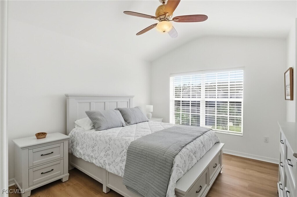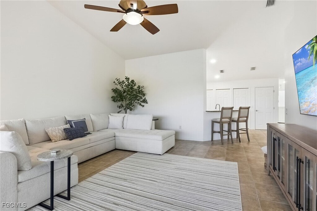 Available for 2026 Season!! January-April 2026 is $5200/month. May-December 2026 is $3500/month. Also available November and December 2025 for $3500/month. Welcome to this serene retreat in the heart of Colonial Country Club! This beautifully appointed second-floor carriage home offers a light and airy ambiance,enhanced by soaring vaulted ceilings and an open-concept layout that invites relaxation and comfort. Step into a fully stocked kitchen,complete with all your cooking essentials,a cozy eat-in nook,a generous pantry,and a breakfast bar perfect for casual dining or entertaining. The living room features a plush sectional that not only provides ample seating but also converts into a sleeper—ideal for movie nights or accommodating guests. (A coffee table will be added soon for added convenience.) The primary suite is a true sanctuary,boasting a king-size bed and tranquil water views. (Window coverings are not shown in the pictures,but they will be installed prior to occupancy.) Enjoy the luxury of an en-suite bathroom with a double vanity,large step-in shower,private powder room,and an oversized walk-in closet. The spacious lanai is perfect for al fresco dining,morning coffee,or evening cocktails while watching the sunset. A large sliding door opens to the lanai,allowing fresh breezes and stunning views to flow in on cooler days. The guest bedroom includes a comfortable queen-size bed,and the den offers additional sleeping space with a sleeper sofa—perfect for visitors. Additional perks include a one-car garage and a short stroll to a satellite pool and pickleball courts. As part of the Colonial Country Club community,tenants enjoy a social membership with access to a resort-style pool,clubhouse,restaurant,tennis,pickleball,bocce,and scenic walking trails. Golf is available on a pay-as-you-play basis. Whether you're looking for a peaceful getaway or an active lifestyle,this home offers the best of both worlds. Come experience the charm and amenities of Colonial Country Club living!