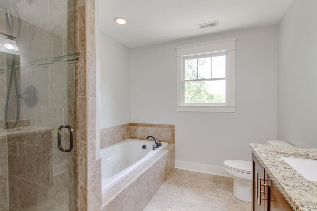 STUNNING 4 bedroom home with 2.5 Bathrooms, vaulted ceilings, lots of natural light, hardwoods, granite counters, ample cabinets, covered front porch, spacious pantry, nicely sized primary bedroom w/ huge walk-in closet and soaking tub, covered front porch, fenced in yard.