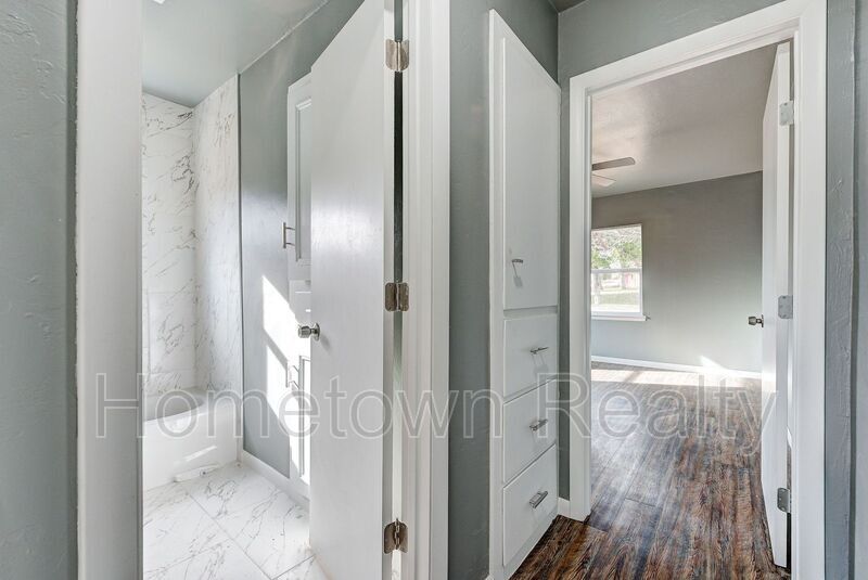 Tucked near Kickapoo and Independence in Shawnee, this updated home has a lot to love. Inside, you’ll find a fresh mix of tile and LVP flooring, new paint, updated lighting and ceiling fans in each bedroom, plus brand-new fixtures in the kitchen and bathroom. The kitchen also features a stainless steel dishwasher, gas stove, and a cozy dining nook—plenty of space to cook and hang out. The garage is a cool bonus, with room for your vehicle and a separate space for storage, hobbies, or whatever you need. Out back, there’s a big fenced yard that’s ready for relaxing, playing, or pets. Pets are welcome upon approval and completed pet screening through (breed restrictions apply). Additional pet deposit of $300 per pet and monthly pet rent of $25 per pet is required. All applicants must complete a pet screening report regardless of ESA, service animals, household pets or having no pets.