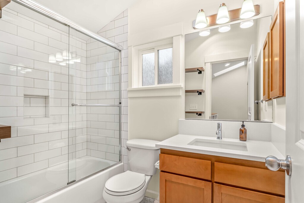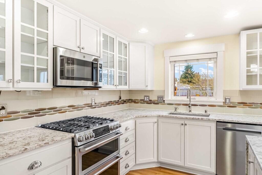 Lovely and well-maintained 3br/2.5ba "wide-format" craftsman style corner unit townhome features newly remodeled bathrooms and kitchen, brand-new in-unit W/D and dishwasher, backyard patio, 2 balconies, fresh paint throughout, vaulted ceilings, gas fireplace, and attached garage with built-in storage. Primary suite features en suite bath and Cascade mountain views. Ideal location on 45 bus line to UW &; proximity to other transit &; bike lanes. In Seattle Public Schools attendance area for highly-rated elementary, middle, and high schools. Walk to bakeries, grocery stores, restaurants, parks &; more! Additional info: Screening fee $40/adult; W/S/G at $75/mo per occupant, tenant to pay all other utilities; dogs permitted on case-by-case basis; no smoking/vaping. Available 4/1/2026. Prospective tenants must tour to apply.