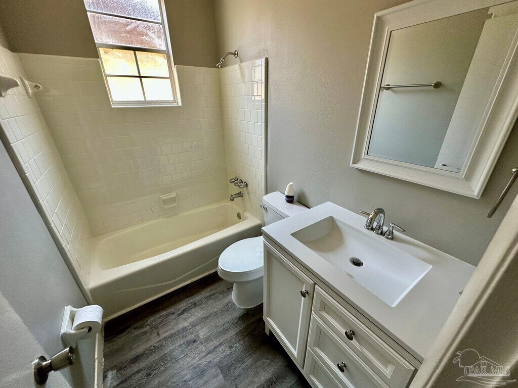 2 bedroom 1 bath completely remolded duplex available for rent in downtown Pensacola! You will love the close proximity to what Downtown Pensacola has to offer including farmers markets,entertainment,restaurants,breweries,interstate access,the Blue Wahoos stadium,and more!! This home is also less than 20 minutes away from Pensacola Beach! The kitchen comes furnished with updated stainless steel appliances. The counter tops and white cabinets have also been replaced giving you a stunning kitchen. Luxury vinyl plank flooring through the whole home. This home also has an updated HVAC system & water heater! Both bedrooms are a great size. Full bathroom in hallway which includes an updated vanity and fixtures. Exterior storage closet with washer and dryer hook ups. Fenced in back yard with small patio off the back. Pet friendly for 1 dog 50 lbs. or less. No cats. No restricted breeds. Prior approval & nonrefundable pet fee due at move in. Ask us about our Military special!