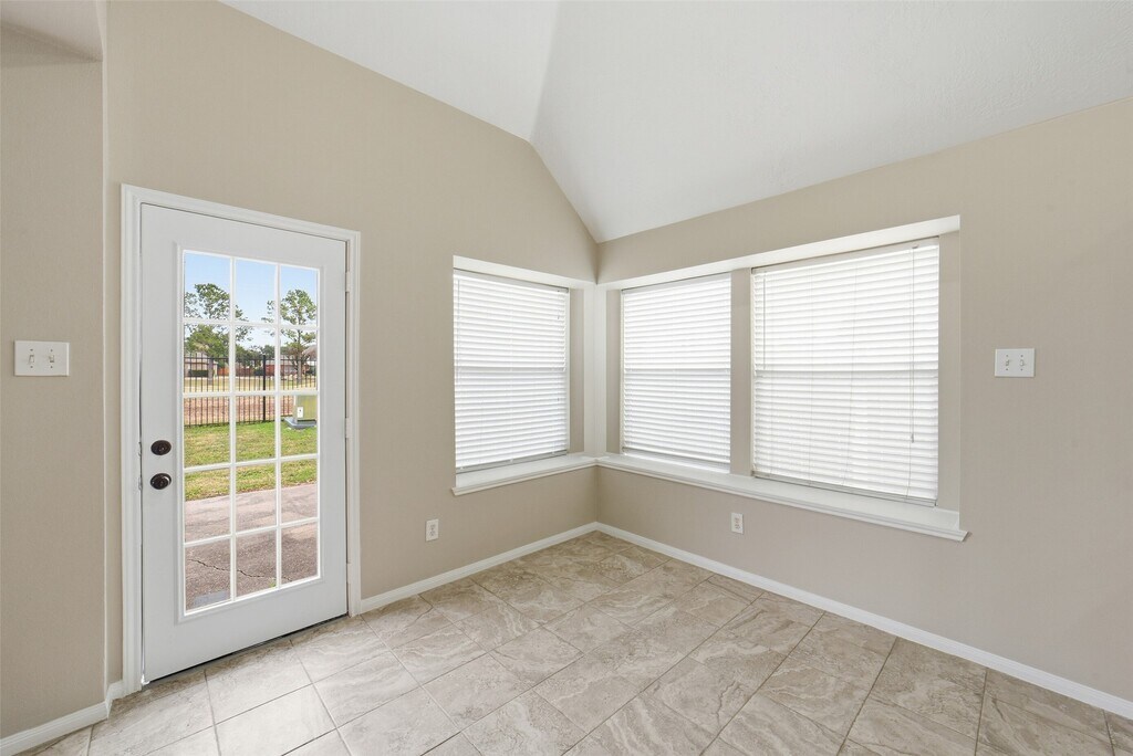 Beautiful one-story home for lease featuring four bedrooms,two bathrooms,& an attached two-car garage. Freshly painted with laminate wood floors in the living and dining areas,tile in the bathrooms,kitchen,breakfast nook,& laundry room,plus new luxury vinyl plank in all bedrooms. This split floor plan offers vaulted ceilings,crown molding,and spacious living,kitchen,& breakfast areas. The kitchen offers granite countertops. The primary bedroom includes an ensuite bath with double sinks,a separate shower,a soaking tub,& a walk-in closet. Enjoy 2-inch faux blinds,new ceiling fans,recessed lighting,& a gas fireplace. Fenced backyard with a patio & scenic golf course view. Neighborhood amenities include a pool,splash pad,playground,walking/jogging trails,& tennis courts. Located in Cy-Fair ISD & close to shopping,restaurants,grocery stores,& more. *Note front yard has just been reseeded & the kitchen range is being replaced with a stainless/black gas range* MLS# 74898832