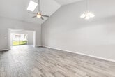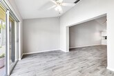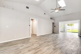 Welcome to 11036 SE Sea Pines Circle, located in the 55+ community of Sea Pines in Hobe Sound. At least one resident must be 55 or older to qualify. Amenities include a heated pool, library, and game areas that foster a warm sense of community.This spacious two-bedroom, two-bath villa features an open-concept layout with vaulted ceilings and abundant natural light. The main living area provides plenty of room for both relaxation and entertaining, flowing seamlessly into a second living room that can serve as a cozy den, media room, or home office. Sliding doors open to a lush backyard where you can enjoy the quiet surroundings.